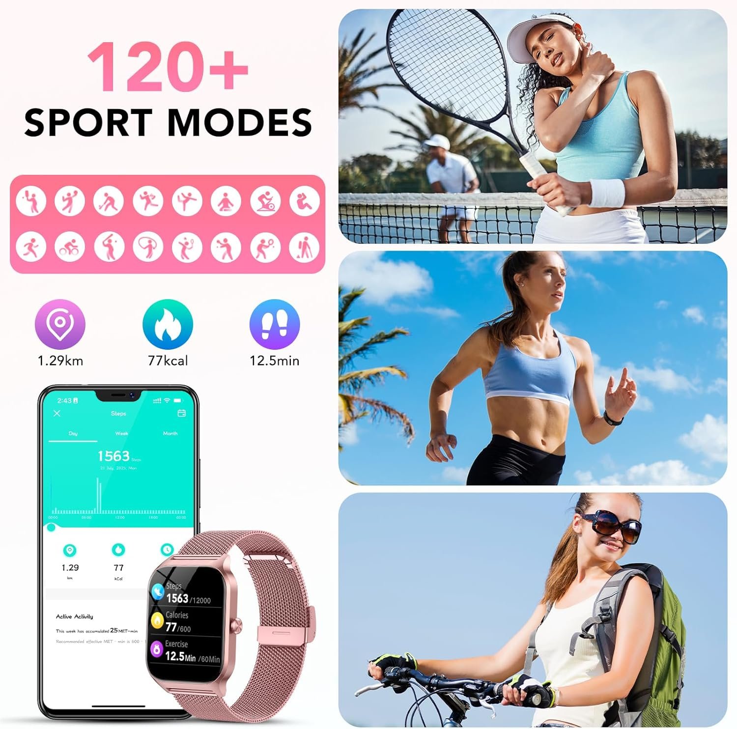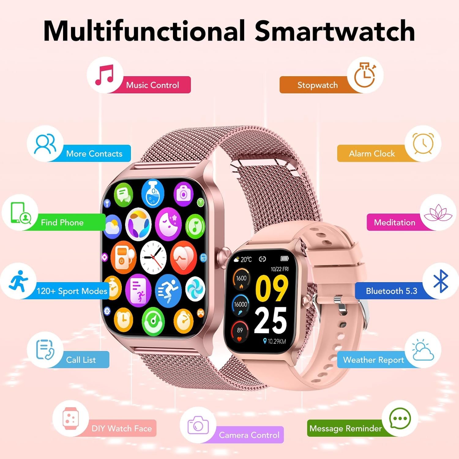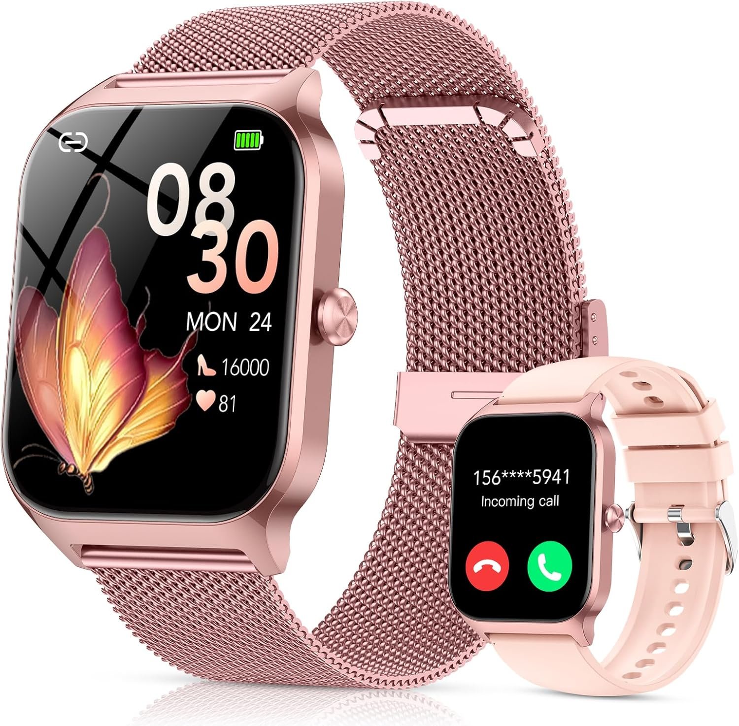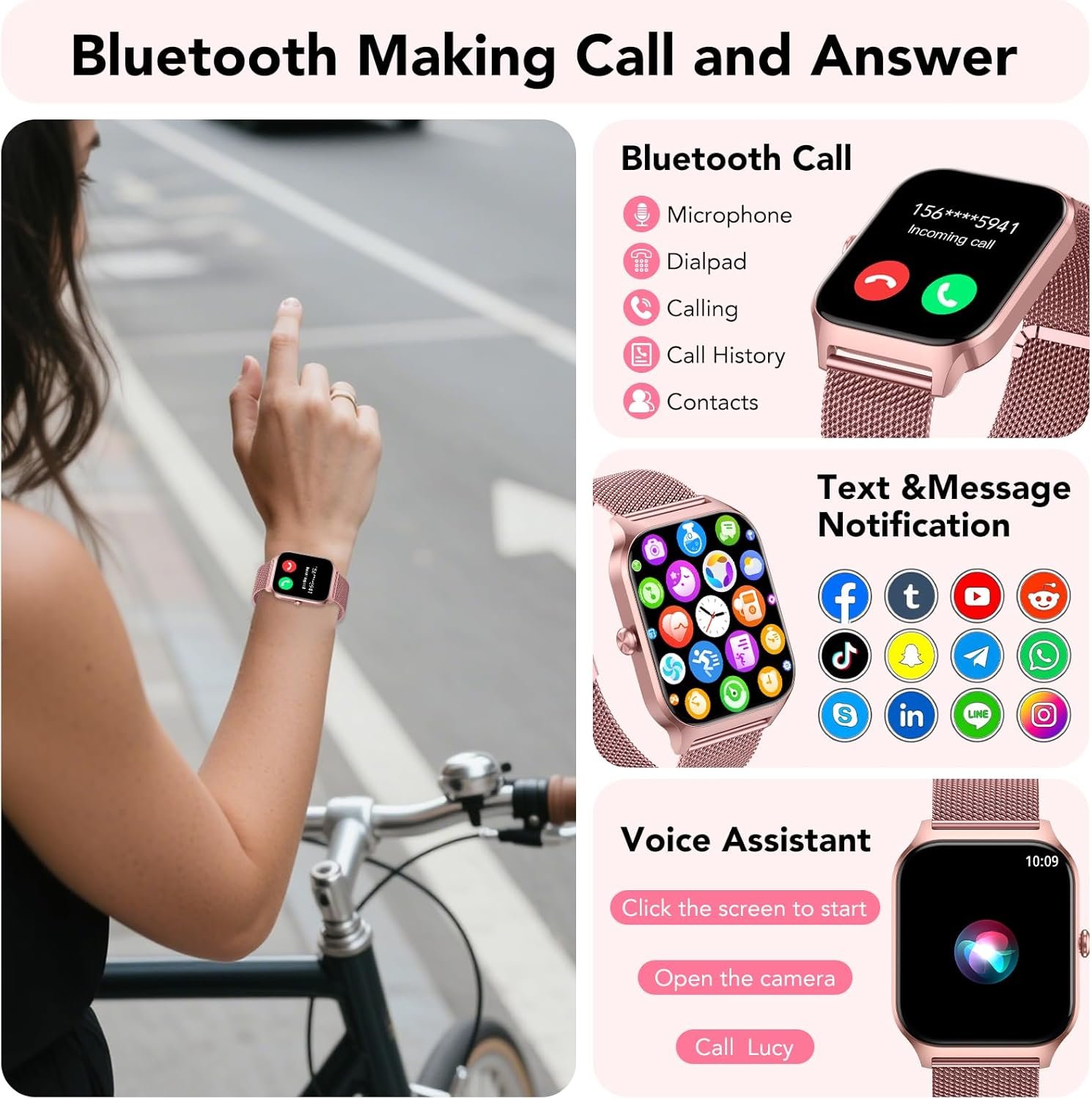 【Bluetooth 5.4 Calling and Message Notifications】The women’s watches adopt a Bluetooth 5.4 chip, ensuring a stable connection. It allows you to make or receive calls directly through the rose gold watch for women without a SIM card, making it ideal for use during workouts, driving, or busy moments. The fitness tracker keeps you connected at all times, instantly pushing notifications for incoming calls, text messages, and social media apps such as Facebook, WhatsApp, and Instagram.
