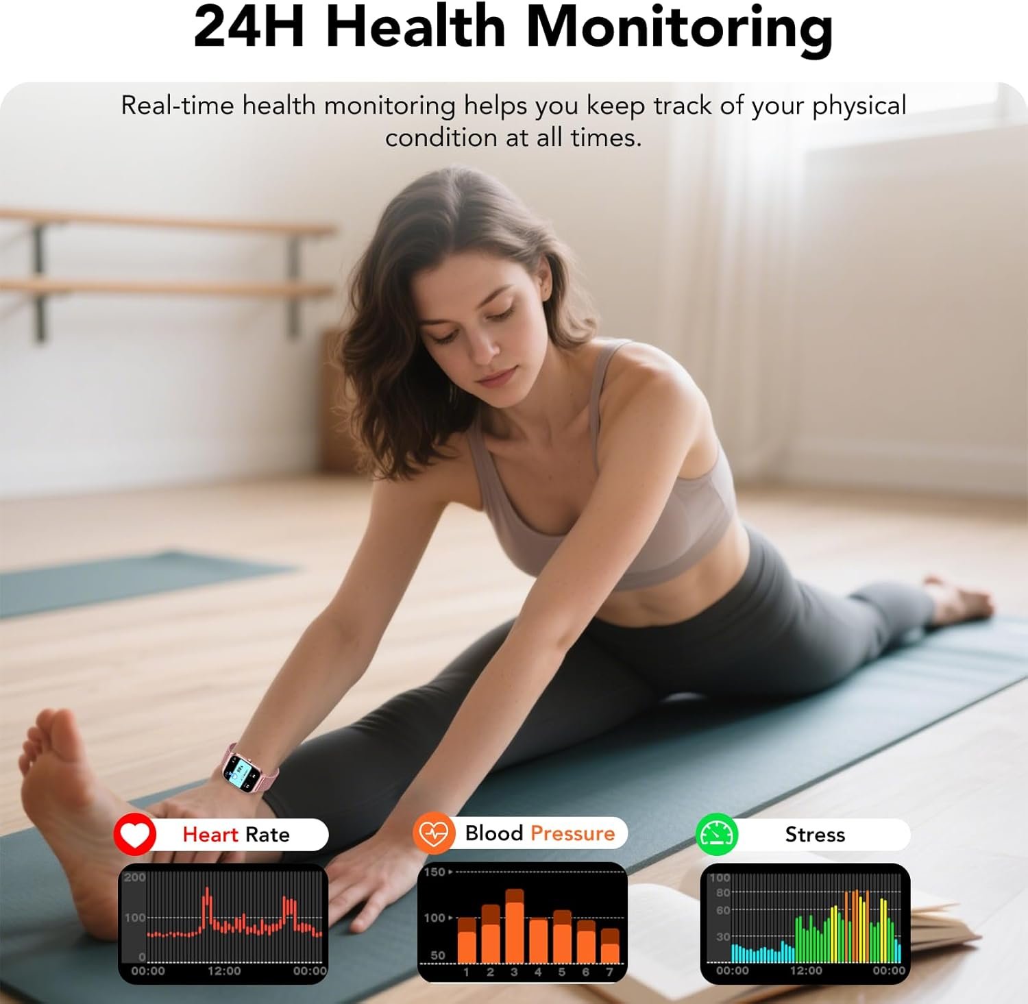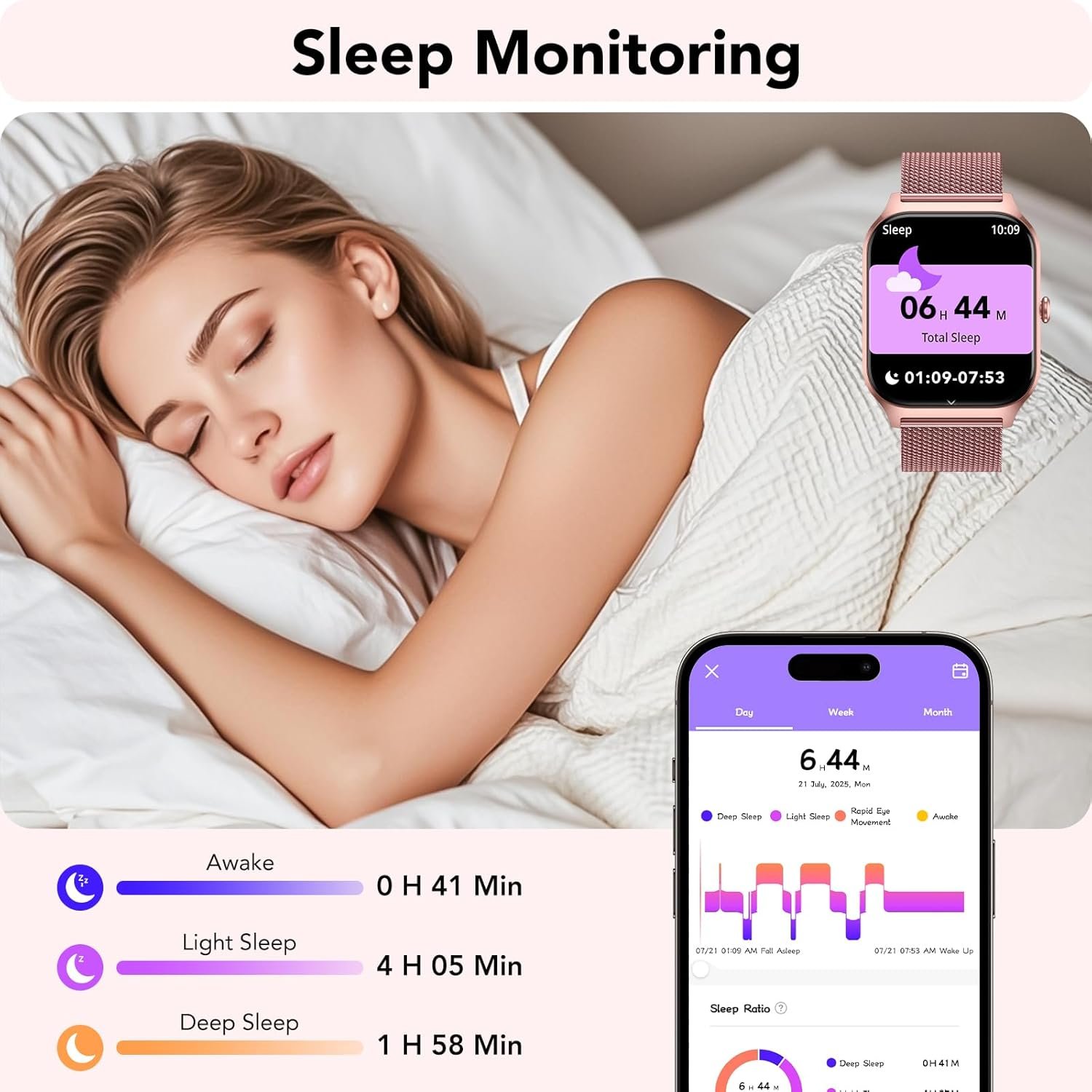 【24-Hour Health Monitoring】Equipped with advanced sensors, the fitness watches for women offer heart rate tracking, monitoring (deep/light sleep), and stress level monitoring. Ladies watches for women provides practical health advice to help improve overall wellbeing.