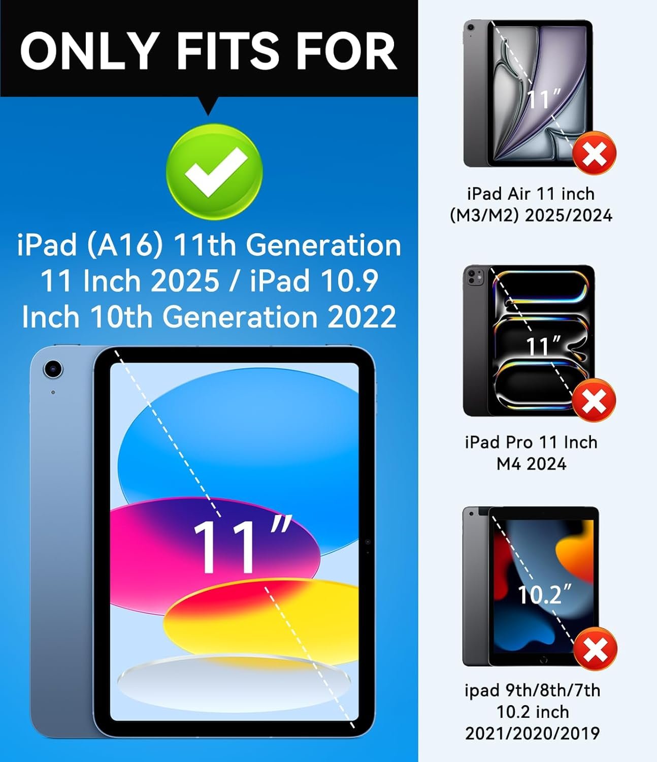 [Compatible Models] Exclusively designed for iPad (A16) 11th Generation 11 Inch 2025 Release (Model Number: A3354/ A3355/ A3356)/ iPad 10th Generation 10.9 Inch 2022 Release (Model Number: A2696/ A2757/ A2777/ A3162 ), [No Screen Protector] DO NOT fit other iPad