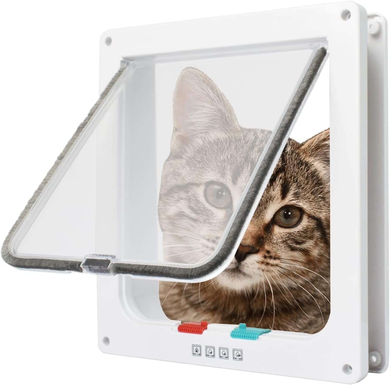 4 Locking Modes: Pet door can be adjusted to 4 modes with the red and blue switches – Out Only, In Only, Both In and Out, Fully Locked. Allows you to easily control your pet’s in and out of the house.