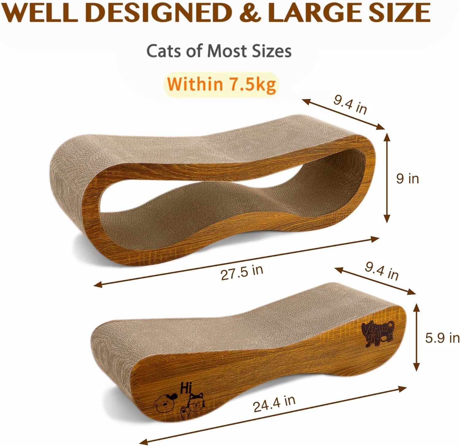 Excellent Cat Scratcher for Cats Who Prefer A Horizontal Surface: From the perspective of cats, the cat scratching board is uniquely designed according to the body structure of cats. The large cat scratch pad is 70 cm/27.5 inches long, 23 cm/9 inches high, and 24 cm/9.4 inches wide, providing your cat with plenty of space to stretch, scratch and relax. The small size cardboard cat scratcher measures 62cm/24.4 inches long and 15cm/5.9 inches high, which is more space-saving. For cats of all sizes