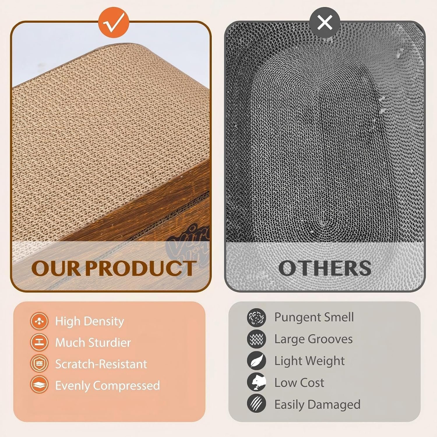 Nice Addition To Home Decor: Whether you have a small apartment or a big house, 2-in-1 cat cardboard scratcher is a great choice for you. The design and practical functions make the scratch post an embellishment of any living space. Can put it in the living room, balcony or any corner where cats like to keeps your furniture safe! Non-slip base ensures that cats can remain stable even during the most intense scratching, providing good stability no matter where you place the corner cat scratcher