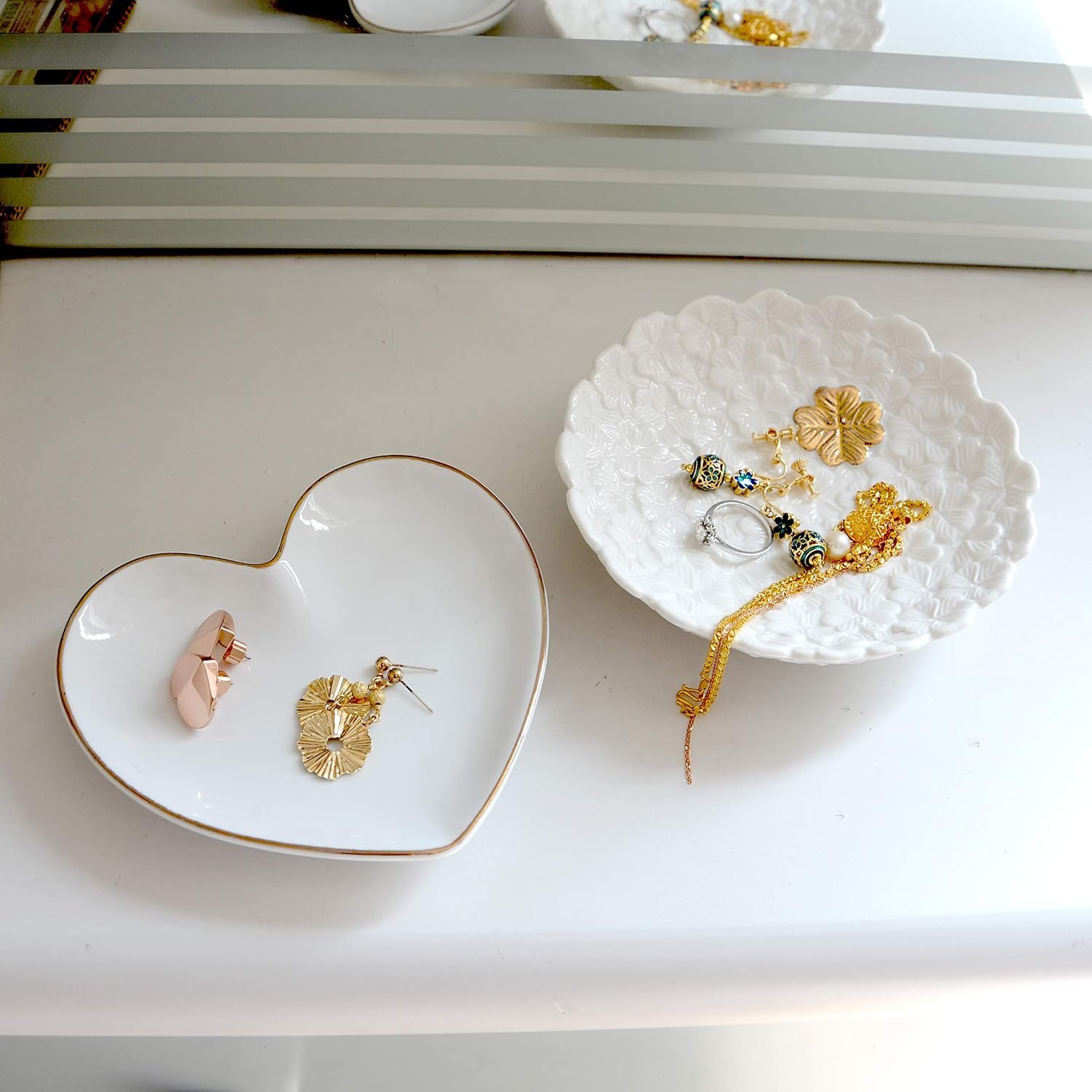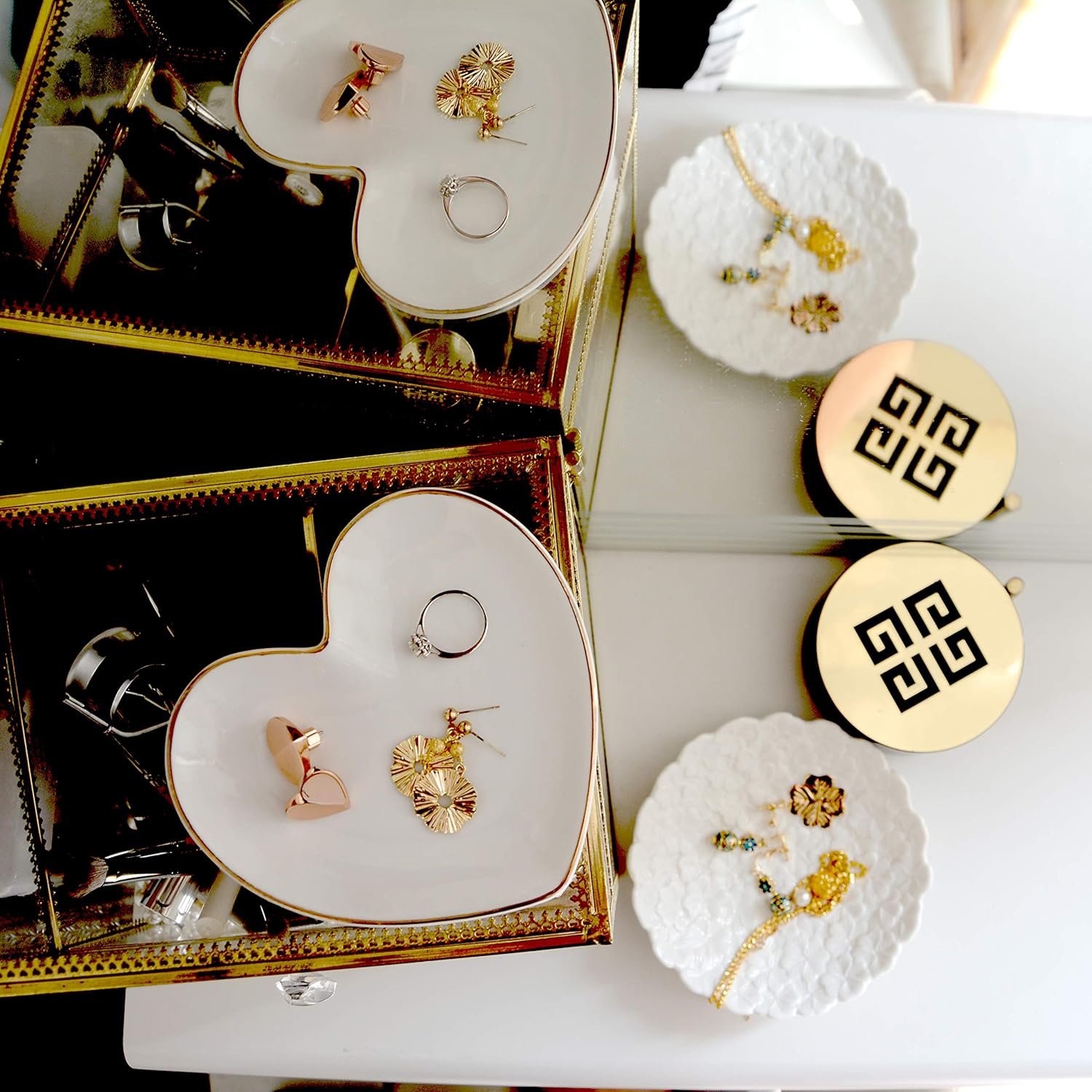 Intended Use:This love shape trinket dish is good to be a decorative tray for bed room, jewelry and trinket dish, also good to be a vanity tray. Making your home bed room and bathroom clean and modern.