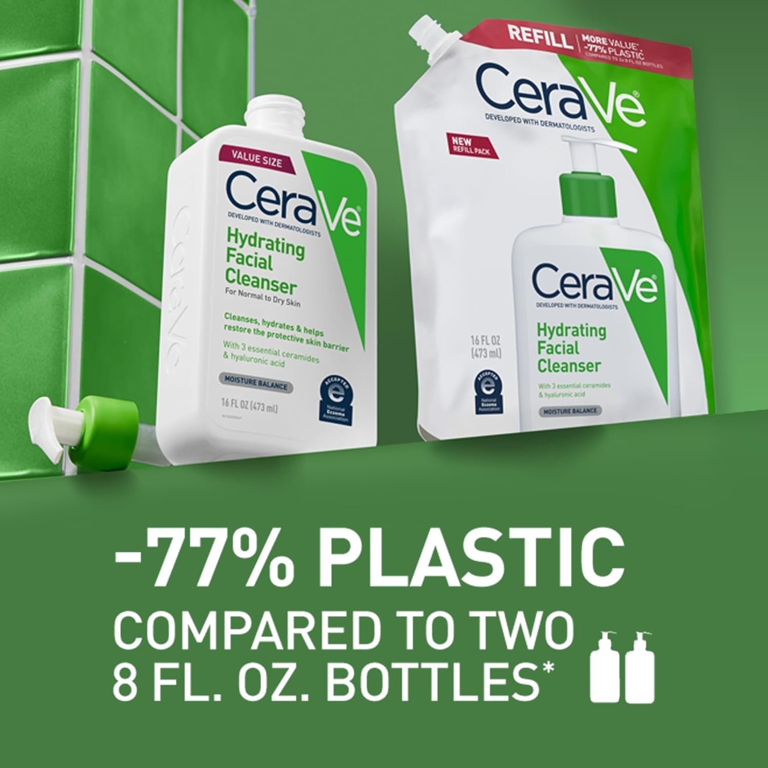 CeraVe Hydrating Facial Cleanser, Moisturizing Face Wash For Dry Skin, Hyaluronic Acid + Ceramides + Glycerin, Hydrating Cleanser For Normal To Dry Skin, 16 Ounce Refill