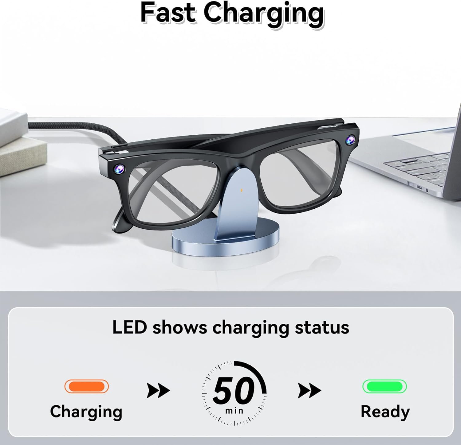 【Easy to Use】 The product is easy to use; just place the glasses on it to charge. Its elegant color and compact design can be a graceful addition to any office or workspace.