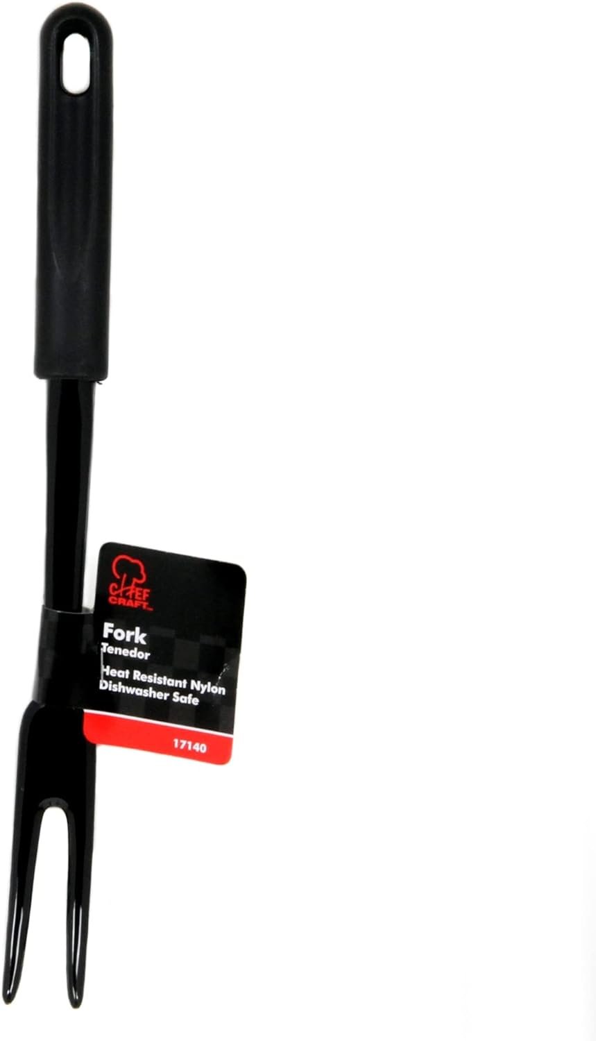 This fork from Chef Craft is a great addition to any kitchen. It’s nylon construction is heat resistant to 450 degrees Fahrenheit. It is perfect to use with pans that have a non-stick coating that you don’t want to damage. You will reach for the Chef Craft Basic Nylon Meat Fork with its comfortable plastic handle day after day. Black working end will not stain no matter what foods you cook. Dishwasher safe for easy cleaning.