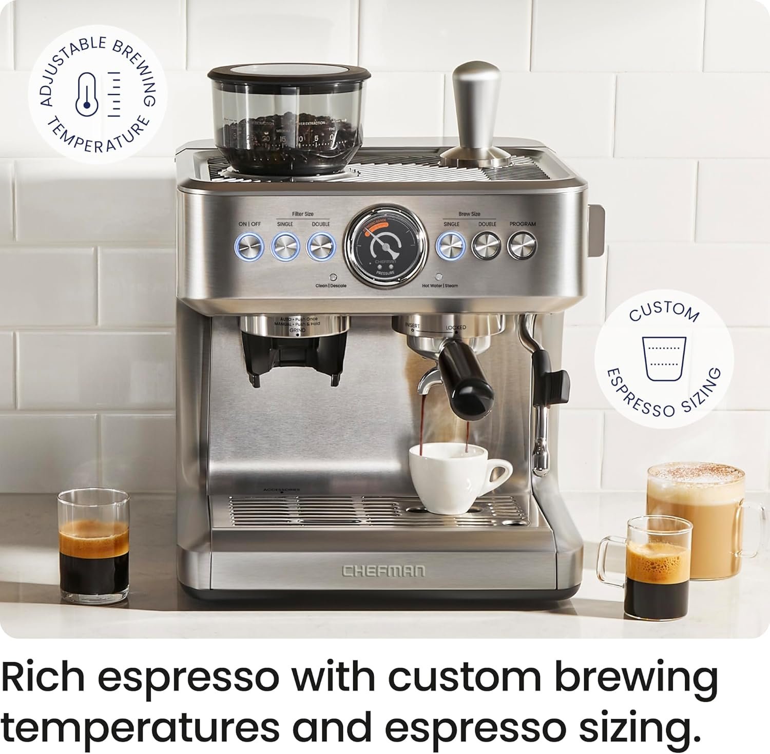 RICH, FLAVORFUL ESPRESSO: The 15-bar pump produces beautiful espresso, with customizable shot temperature and volume settings for your ideal morning cup. Monitor it all with the pressure gauge display on the user interface.