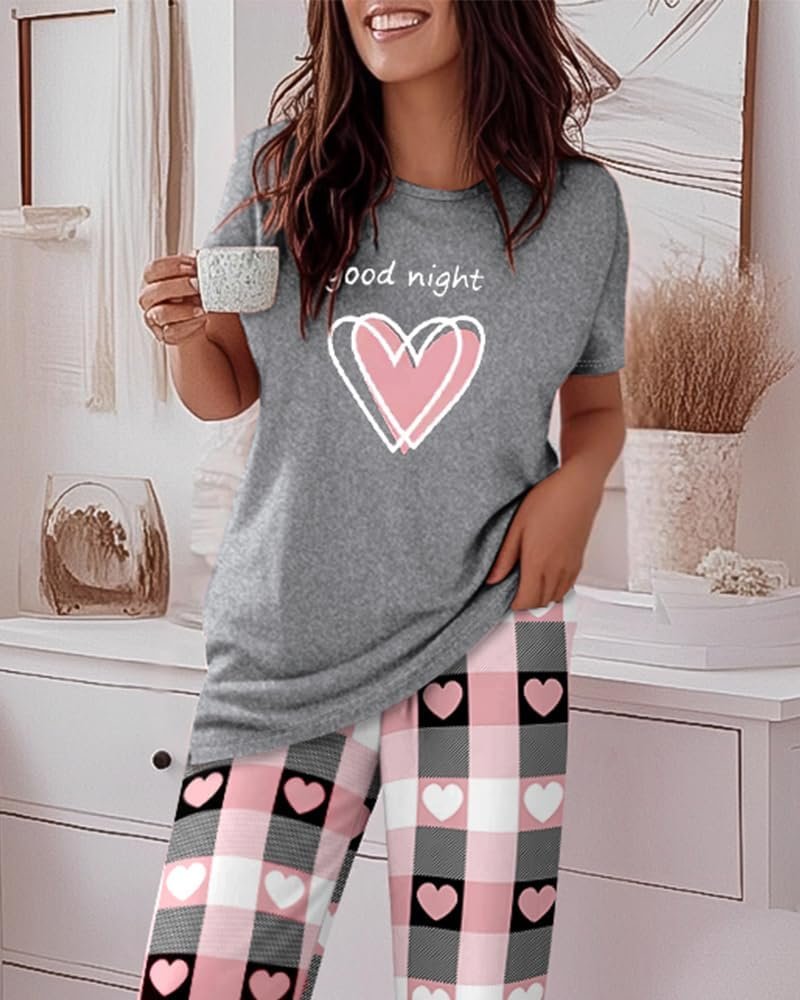 2 Piece Short Sleeve Lounge Set Printed Loose Pants Pj Sets