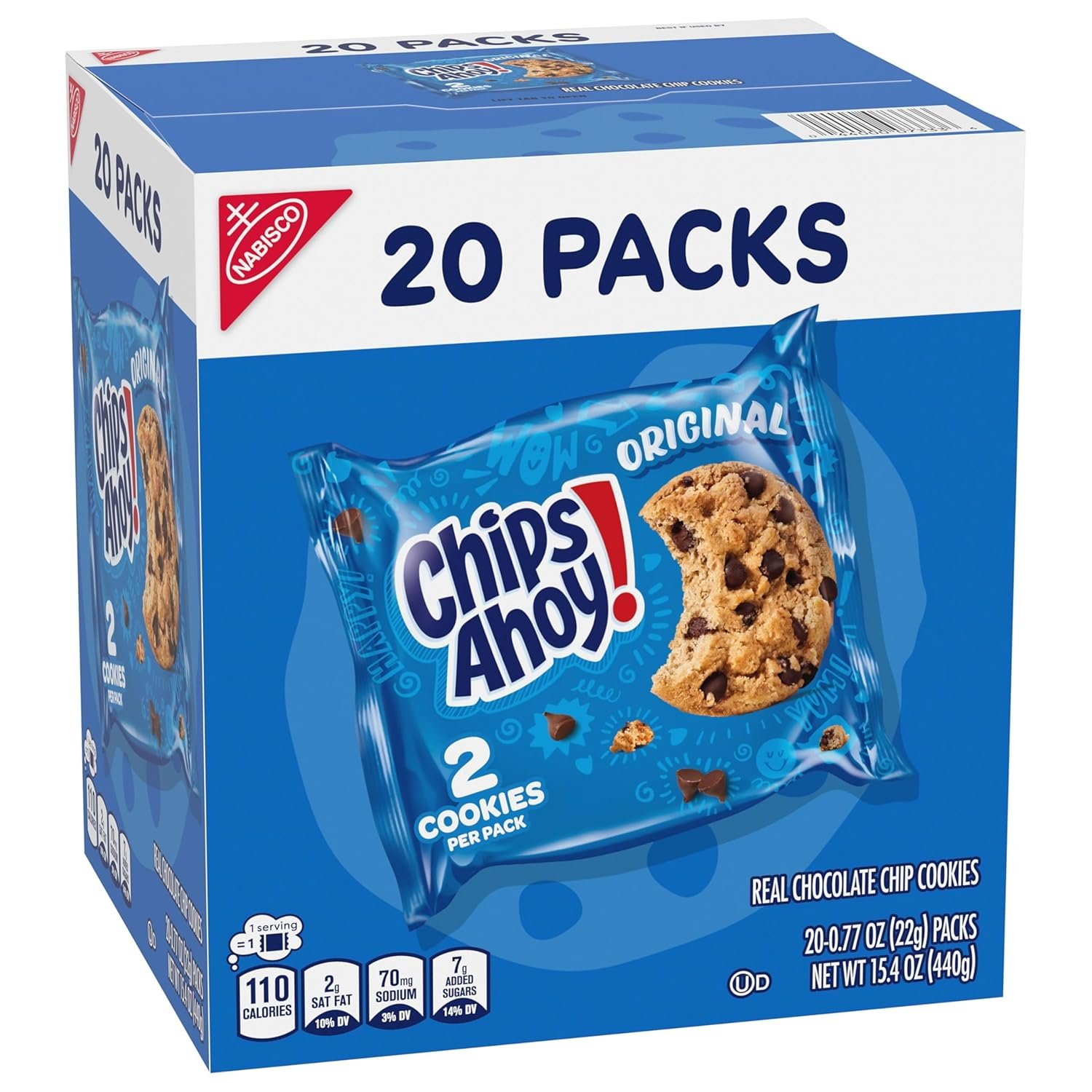 This box contains 20 – .77 oz packs of classic CHIPS AHOY! Chocolate Chip Cookies