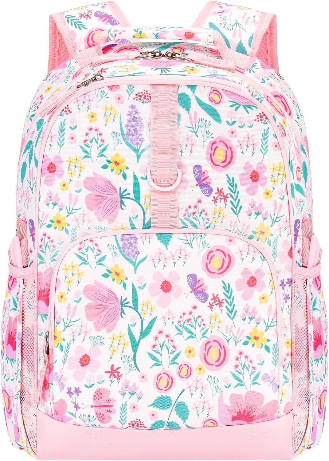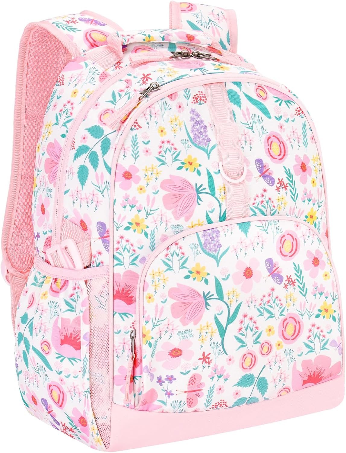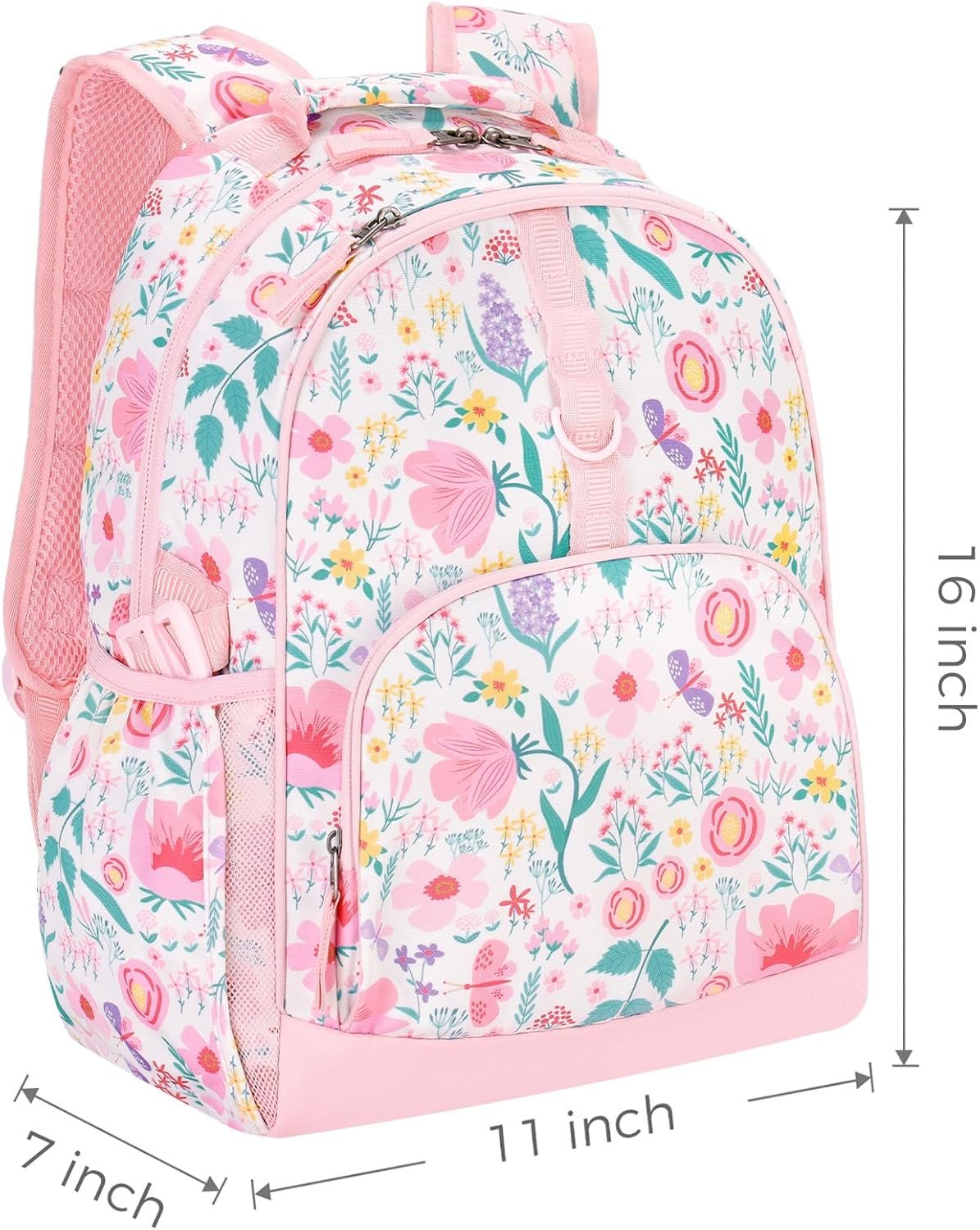 Kids Backpacks for Girls: Multiple pockets, new models with new snaps, can hang a lunch bag on your school bag(pictures with snaps on the left and right side are the new models), can hold a water bottle, perfect for school and daily use