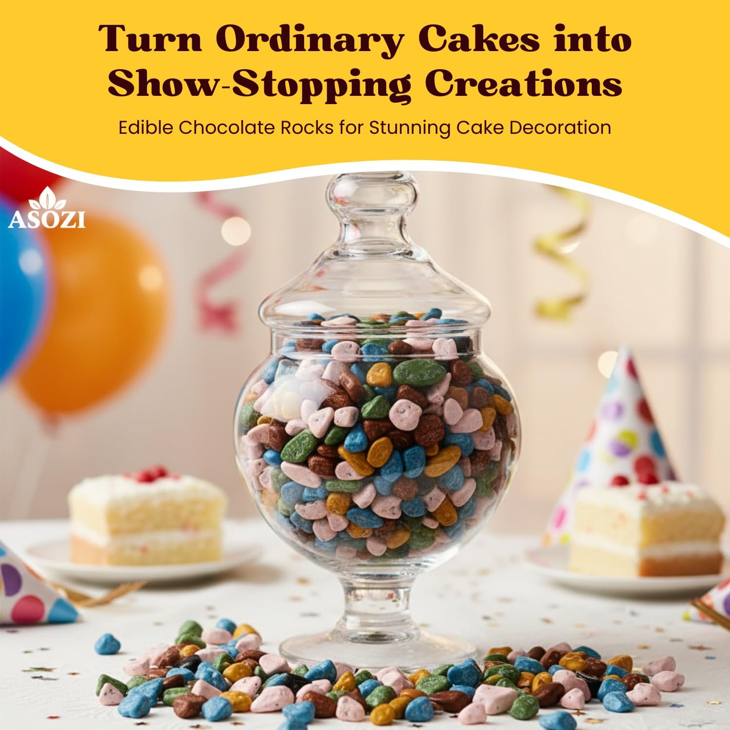 🍬𝗖𝗿𝗲𝗮𝘁𝗶𝘃𝗲 𝗦𝘄𝗲𝗲𝘁 𝗔𝗽𝗽𝗹𝗶𝗰𝗮𝘁𝗶𝗼𝗻𝘀: Chocolate candy rocks are perfect for adding texture and visual interest to desserts, snack mixes, candy jars, and themed food presentations. Their unique look and satisfying crunch make them a flexible candy choice for both simple treats and imaginative culinary creations.