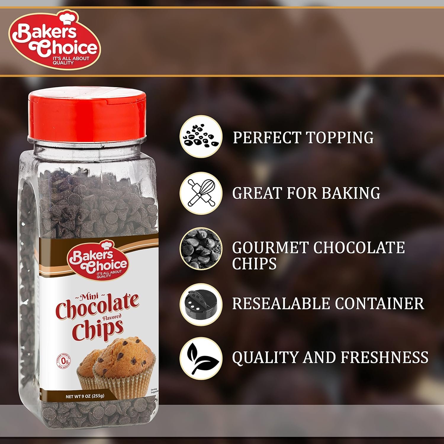 GREAT FOR BAKING: Baker’s Choice chocolate chips for melting and toppings add texture and delicious flavor to baked treats and all types of desserts!