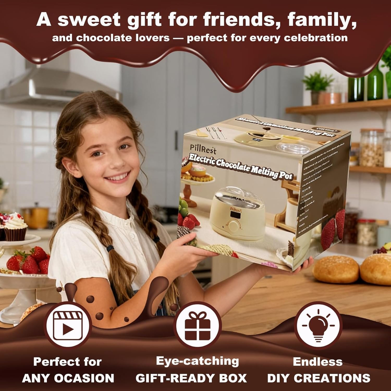 2.Melt with Confidence- Add chocolate and watch it transform: See exact temp. Melts full pot in 10 mins—smooth, no scorching.