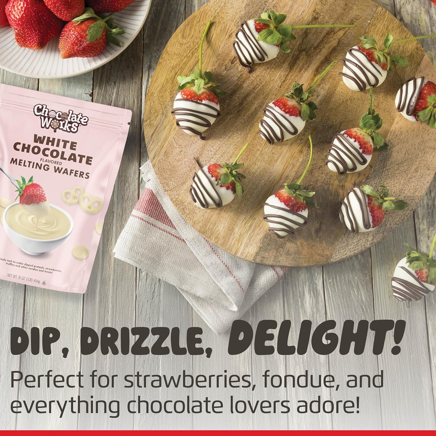 DESSERT CHOCOLATE- Making delectable chocolate confections is a cinch with our premium wafers. It’s perfect for all your favorites, including chocolate covered strawberries, fondue, chocolate bark, fudge, and anything else that needs a touch of chocolatey delight.