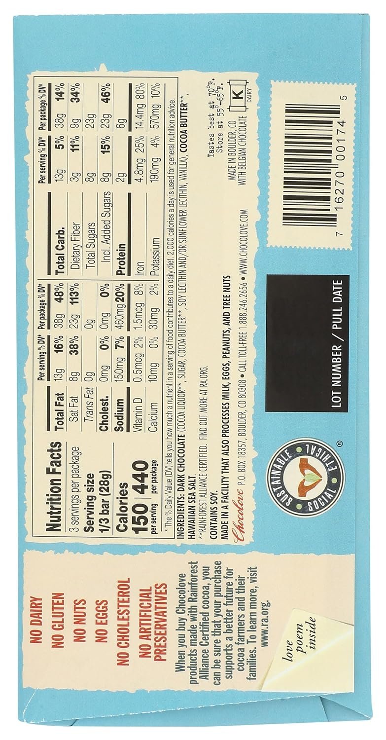 Chocolove Hawaiian Sea Salt 72% Dark Chocolate Bar, 3 Oz