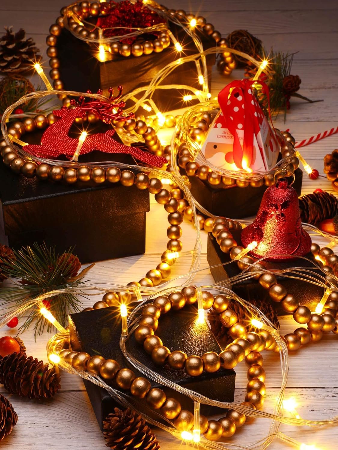What you receive: a Christmas wooden bead garland with 300 pieces wooden beads, will be a nice decorative tool for party or festivals, can make your home look more different