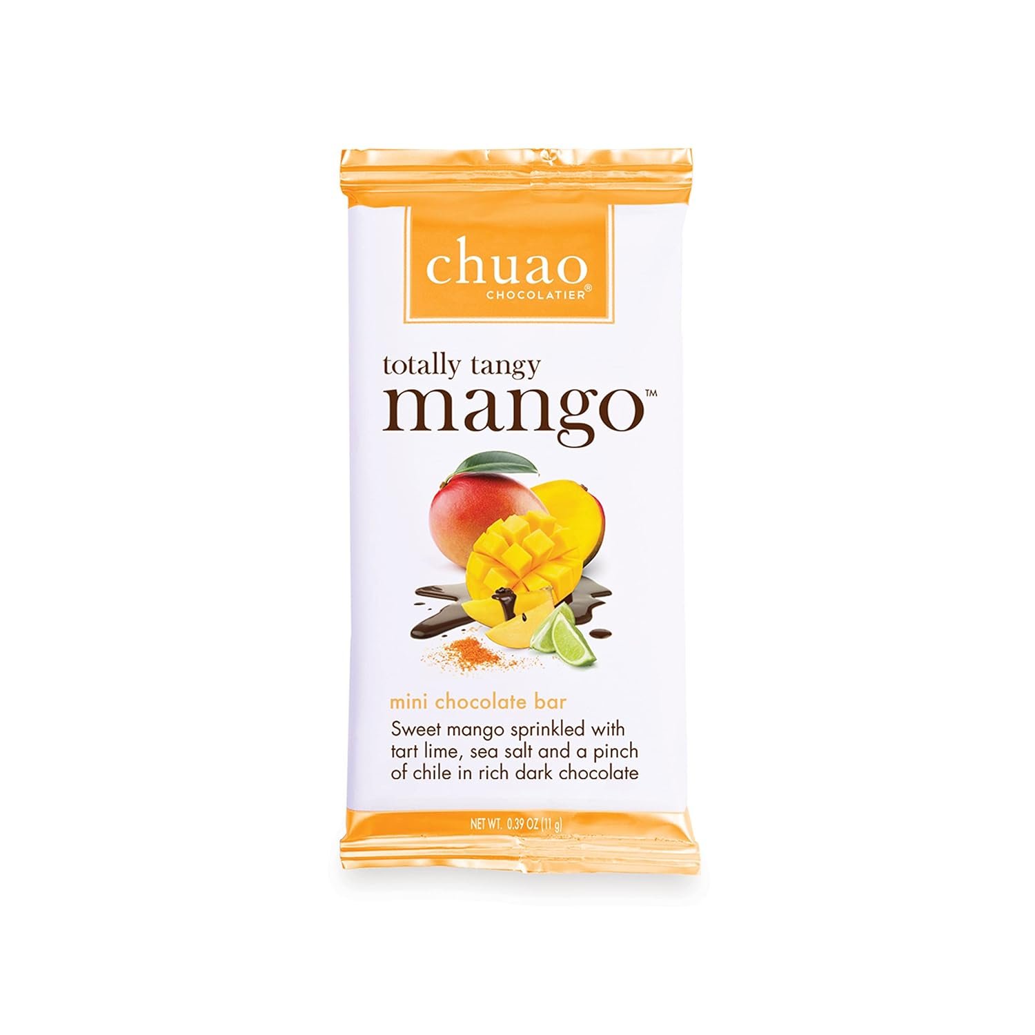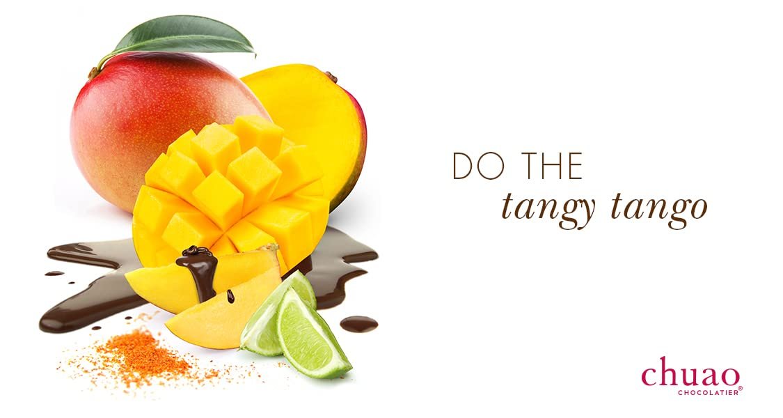 HIT EVERY TASTE BUD: Totally Tangy Mango is a dark chocolate featuring sweet mango sprinkled with tart lime, sea salt and a pinch of chile in rich dark chocolate.