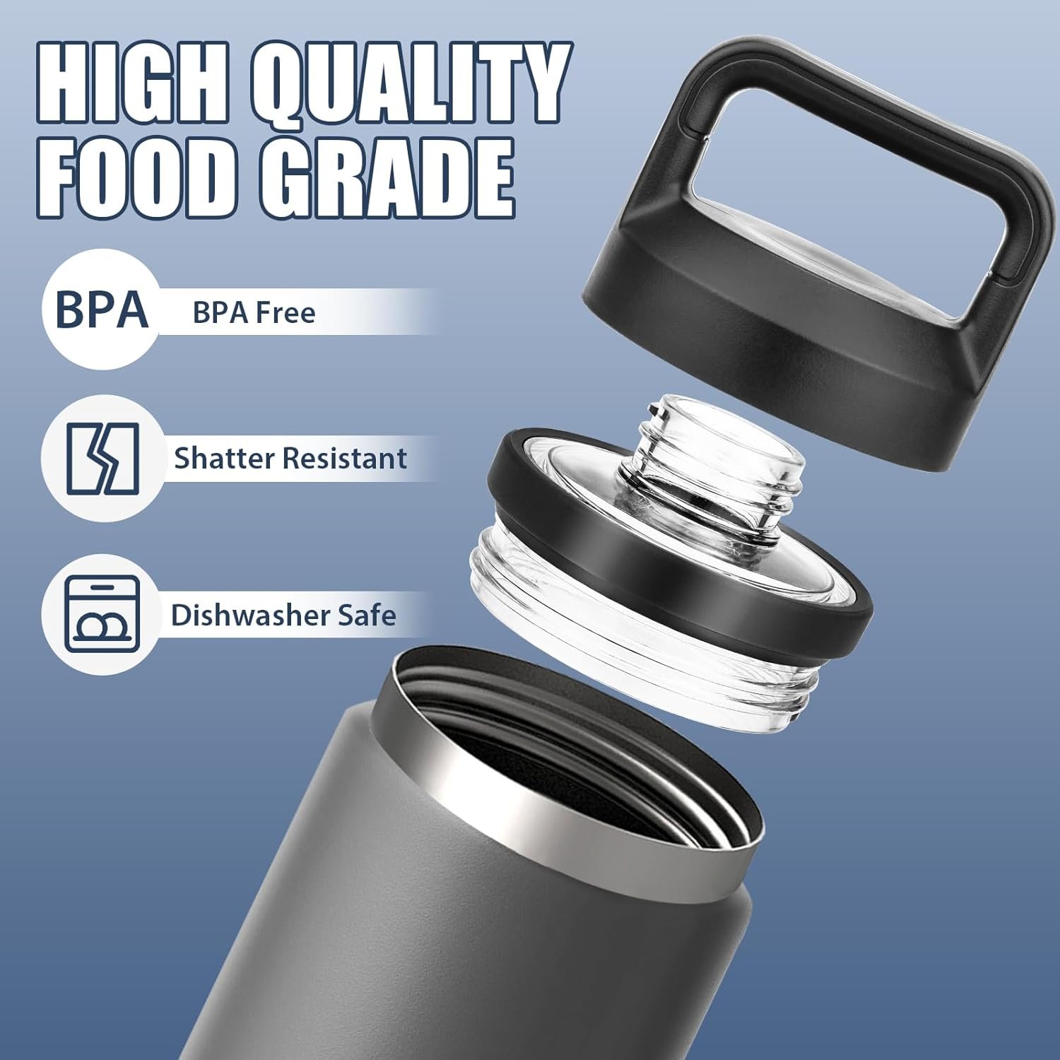 Extra-wide opening make it very easy to fill, drink and clean, also dishwasher safe.