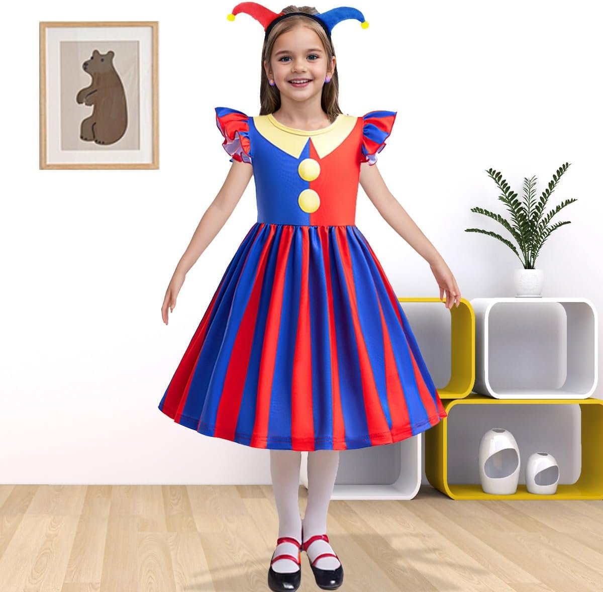 Pomni Costume Kids Cosplay Amazing Digital Circus Dress Up Girl 2t 3t 4t 5t 6t 7t 8tPomni Costume Kids Cosplay Amazing Digital Circus Dress Up Girl 2t 3t 4t 5t 6t 7t 8t