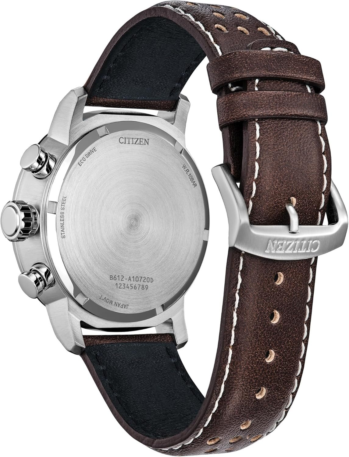 Model Number CA0851-05X Collection Weekender/Brycen Clasp Type 3-Piece Buckle Strap Dial Color Green Technology Eco-Drive – Powered by Light, Never Needs a Battery Water Resistance up to 100 Meters Band Material Brown Chesnut Leather Perforated Strap Band Color Silver Case Diameter 44 millimeters Case Material Stainless Steel Dial Window Type Mineral Crystal Display Type Analog Case Thickness 12.08 millimeters