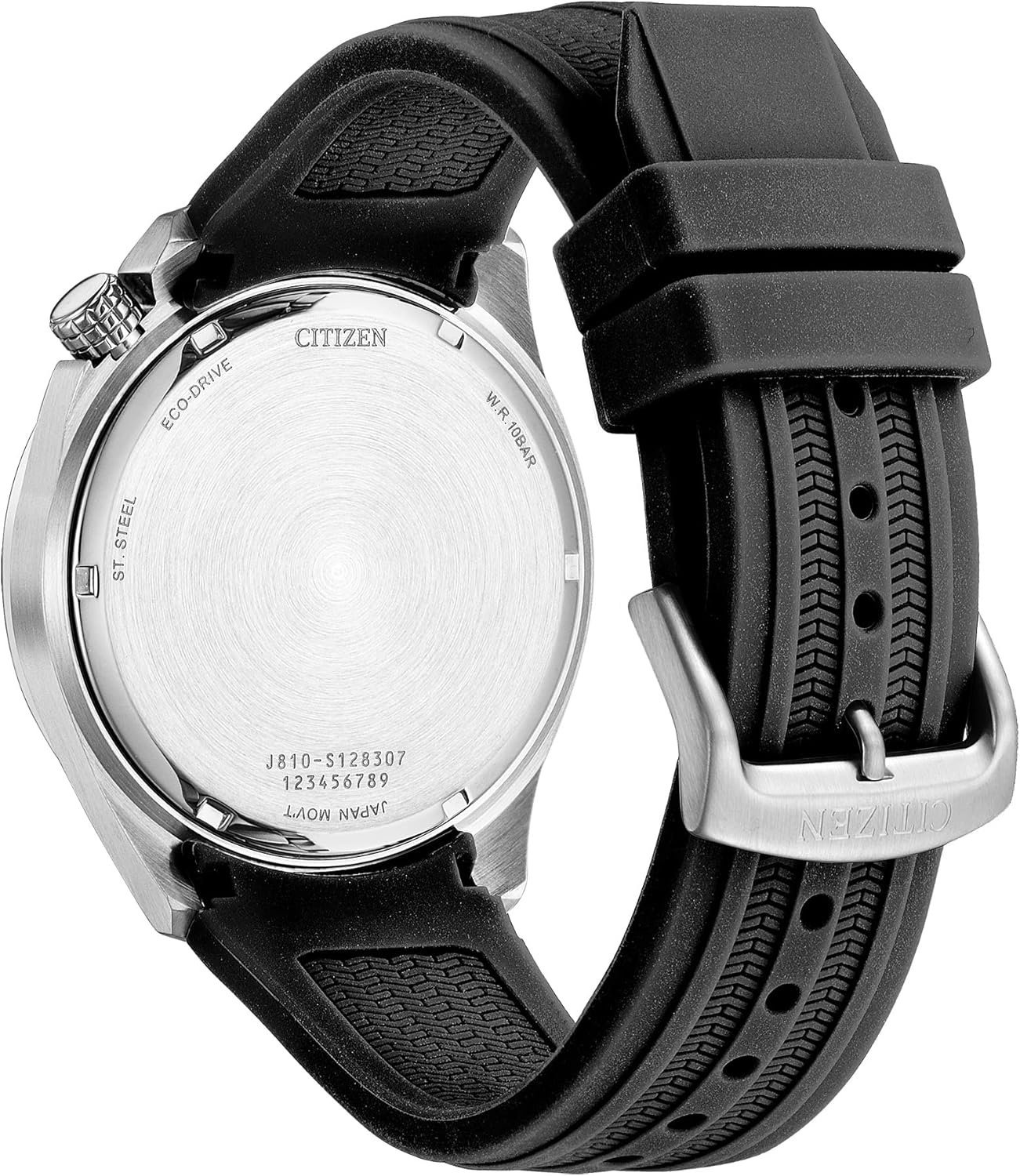 A casually styled everyday favorite complete with a brass black dial, silver-tone case and black polyurethane strap with date function. Water resistant to 100 meters. Powered sustainably by Eco-Drive technology – batteries not required.