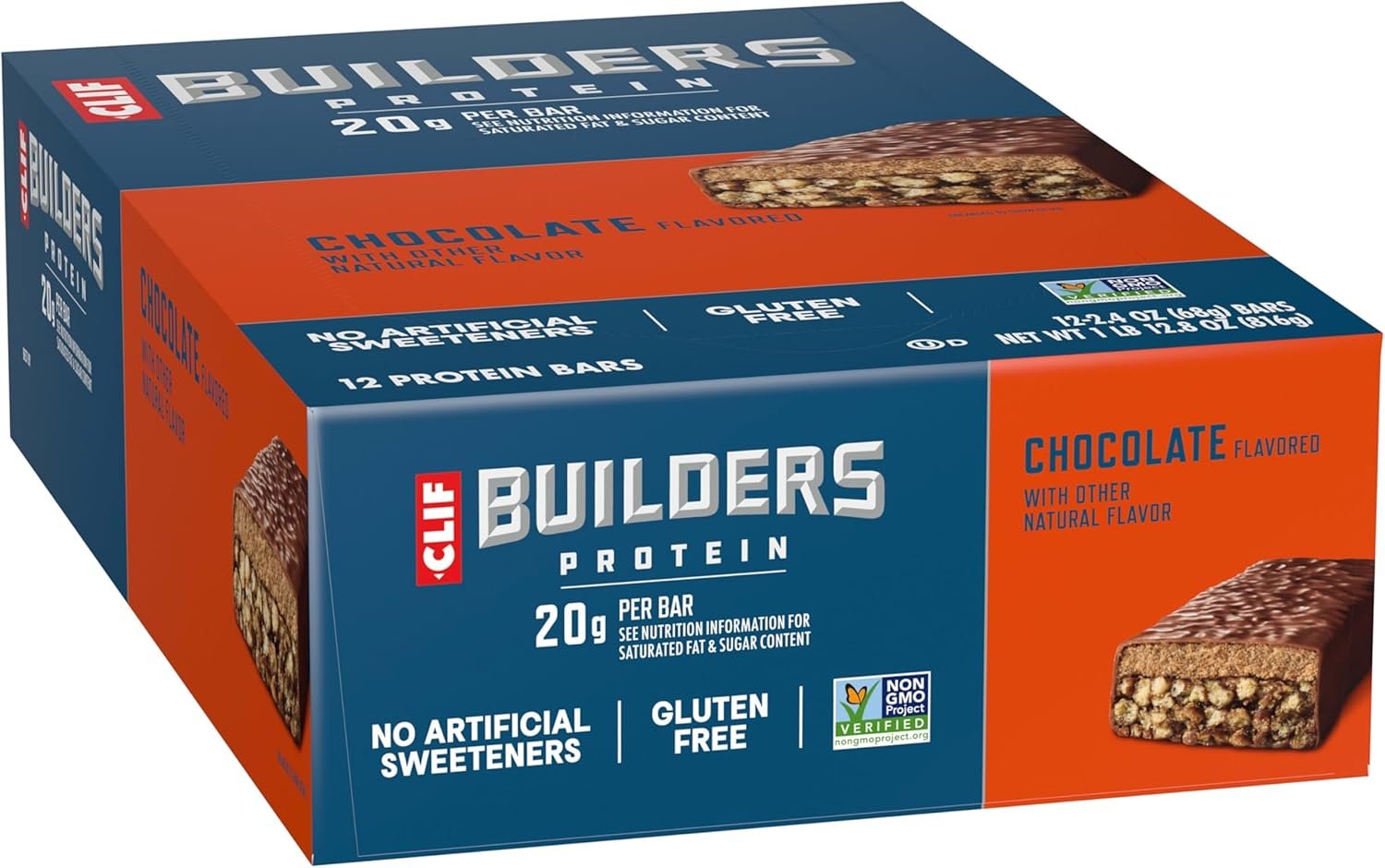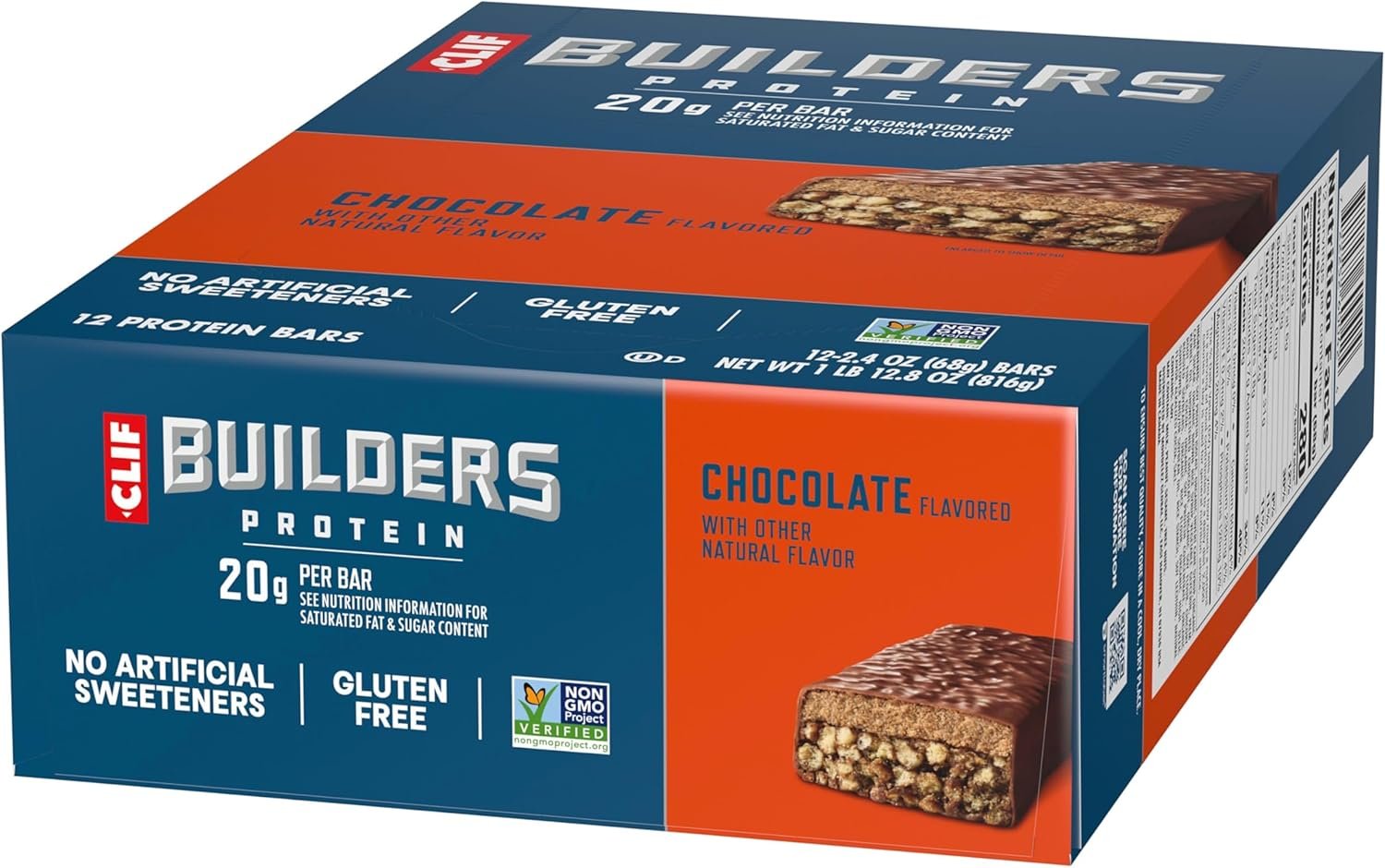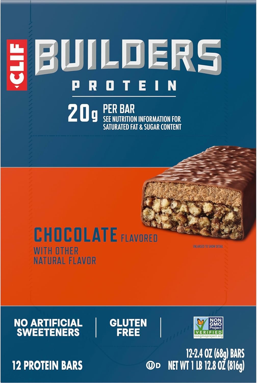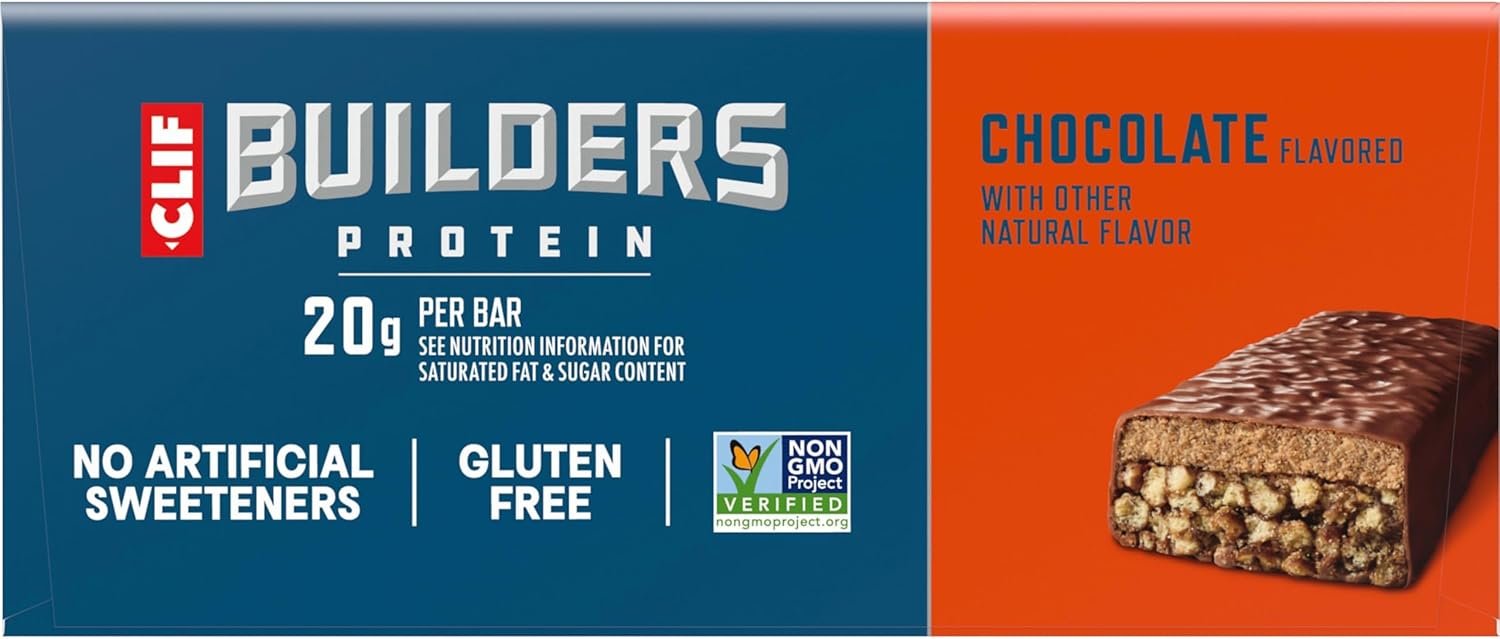 CLIF BUILDERS Chocolate Flavor Protein Bars are designed to help sustain hardworking bodies after tough workouts, whether at the gym, on the court, or on the track. High protein bars packed with 20 grams of plant based protein per bar* to help support, rebuild, and repair muscles, these gluten free protein bars work as hard as you do to help build something great. These CLIF BUILDERS bars with a deliciously classic chocolate flavor help fuel recovery and get you ready for your next tough workout. Non-GMO Project Verified and low glycemic**, they contain no high-fructose corn syrup and no artificial sweeteners, making CLIF BUILDERS protein bars a powerful (and tasty) addition to your post-workout recovery regimen. *See nutrition information for saturated fat and sugar content. **Low-glycemic index foods digest slowly for prolonged levels of energy.