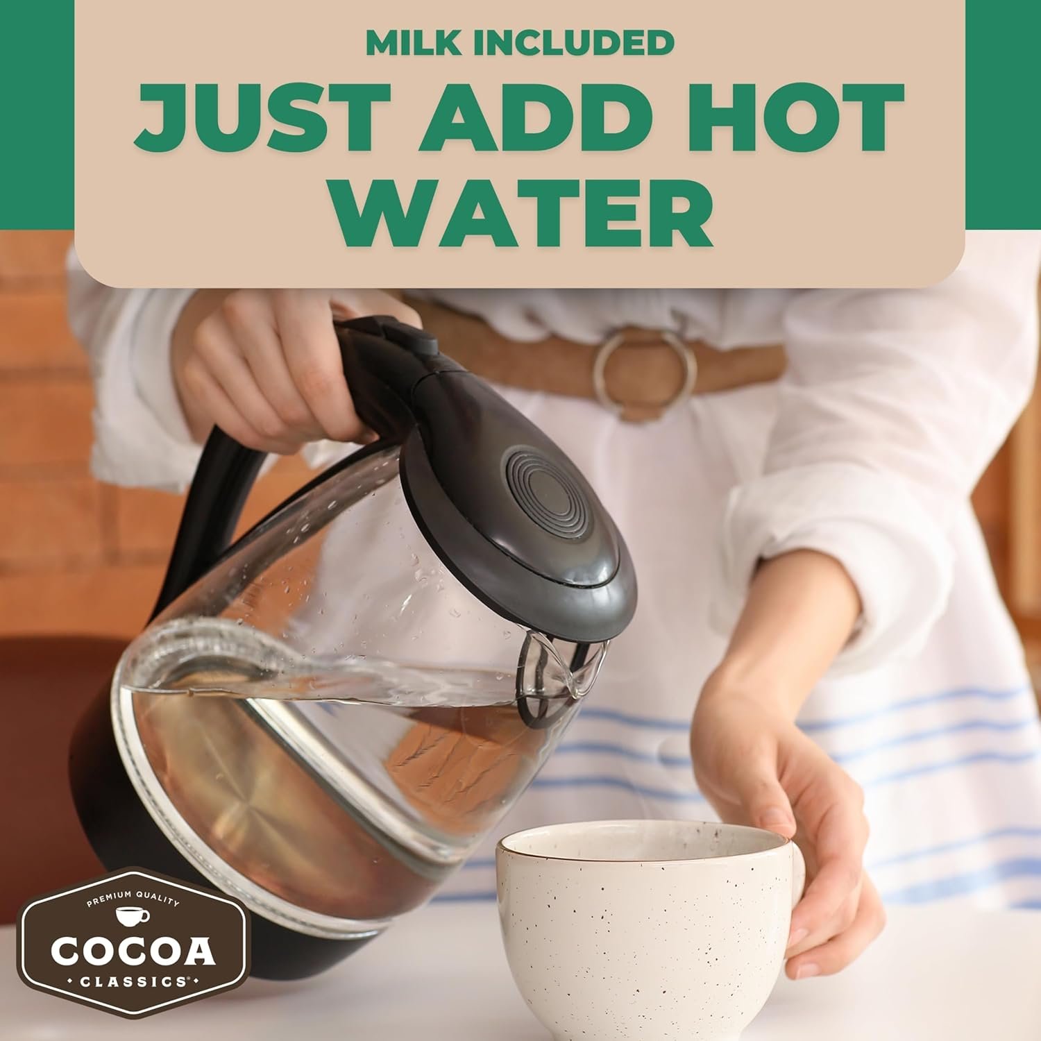 MADE WITH REAL MILK: Our hot chocolate mixes are made with nonfat dry milk, leaving you with only one task. Just add hot water and watch Cocoa Classics instantly dissolve into a rich and creamy treat!