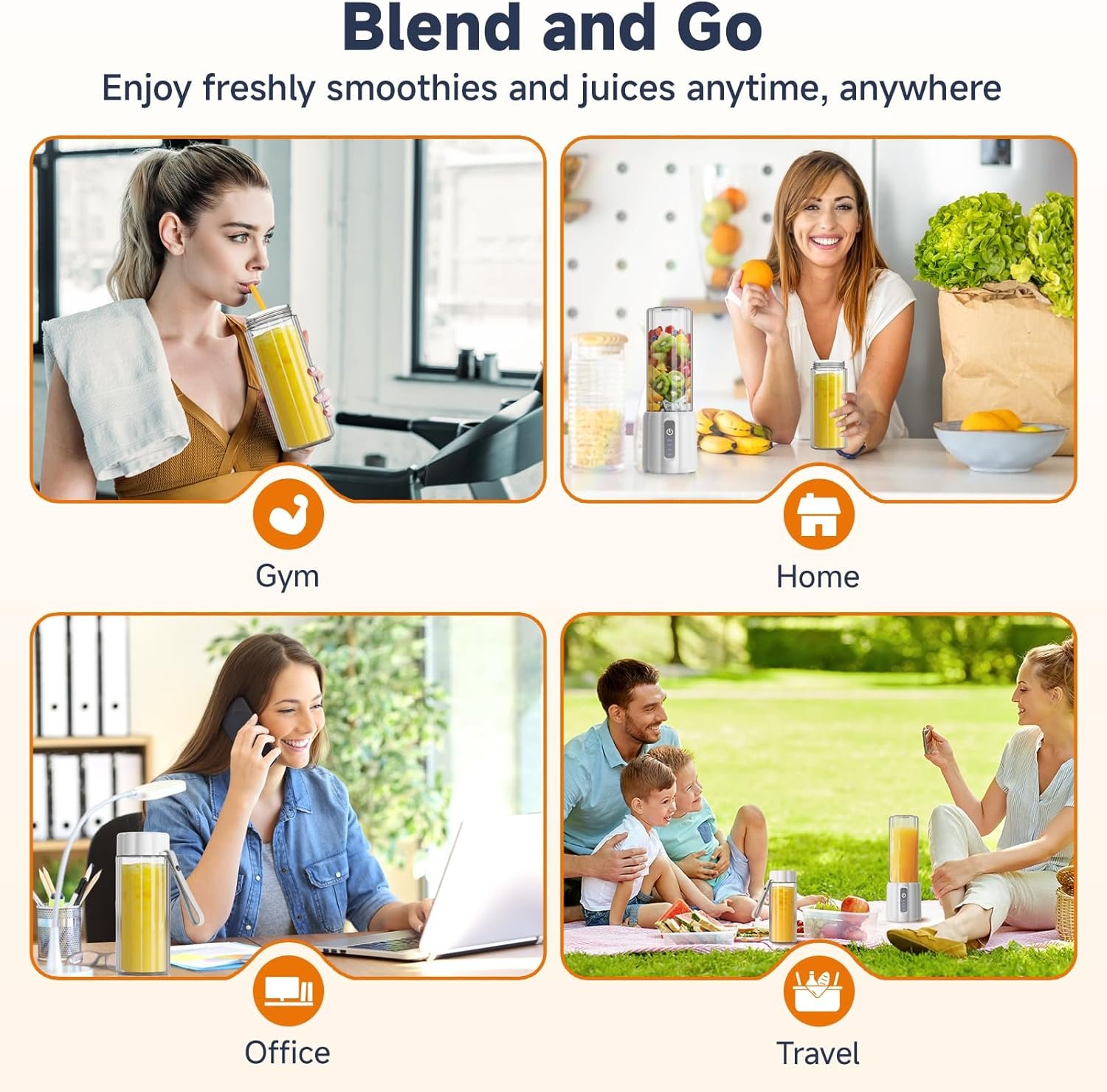 EFFICIENT 6 BLADES: Featuring 6 ultra-sharp 304 stainless steel blades and a 22000 rpm rotational speed, our portable blender for smoothies can effortlessly crush soft fruits and vegetables for perfectly smoothies and shakes