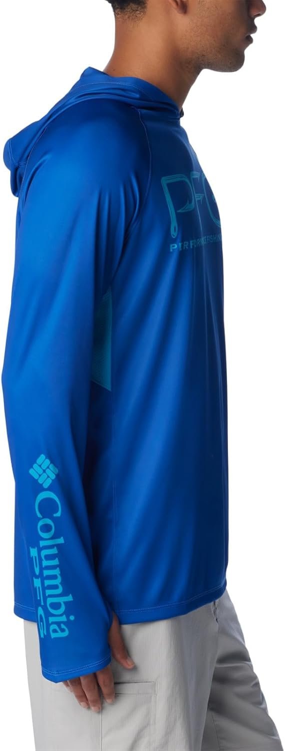 An ideal water layer, this lightweight PFG vent hoodie wicks sweat and shades you with UPF 50 sun protection. The neckline provides optimal coverage and the hood fits slim enough to layer under a hat to protect your neck and ears. Columbia offers this hoodie in multiple colors and sizes. Regular fit.