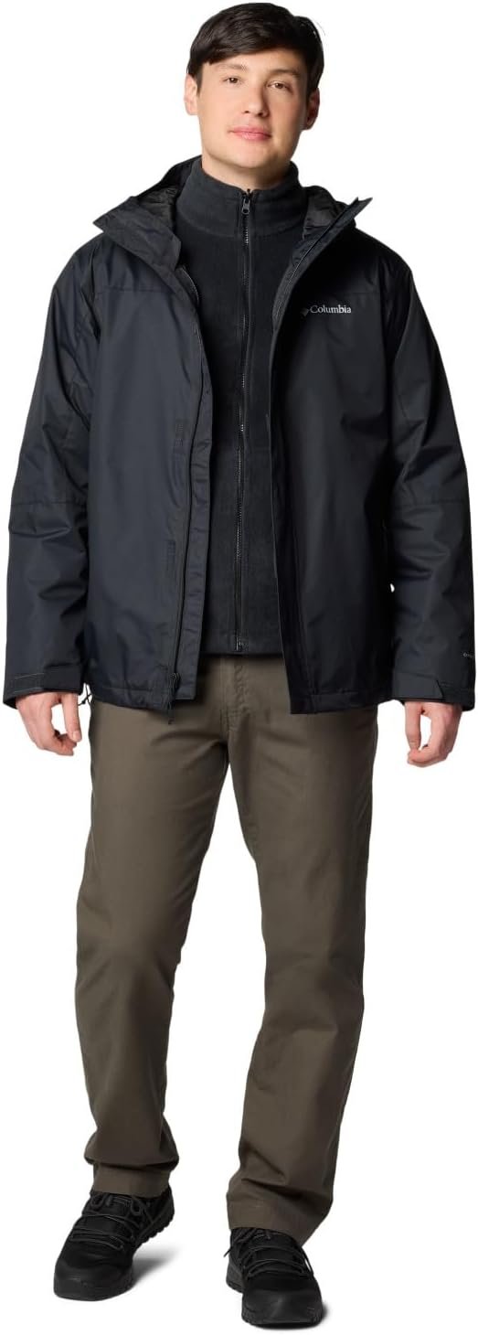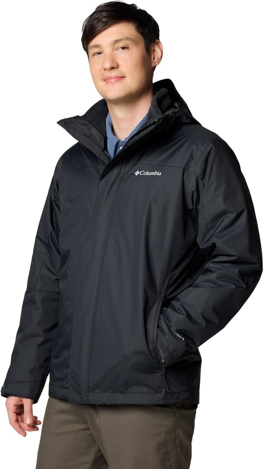 This all-in-one Columbia men’s jacket system includes a waterproof-breathable shell and a fleece liner that can be zipped in on cold days or left behind when it’s warmer. Layered together, they deliver a great mix of warmth, weather protection, and versatility. The zippered pockets keep your essentials close at hand. Columbia offers this jacket in multiple colors and sizes. Extended sizing available. Regular fit.