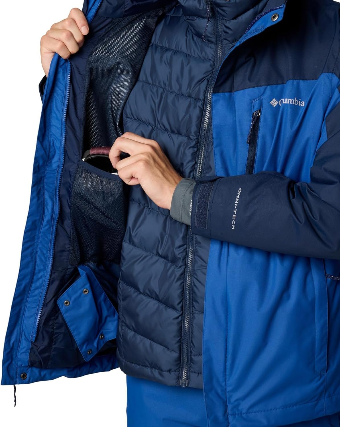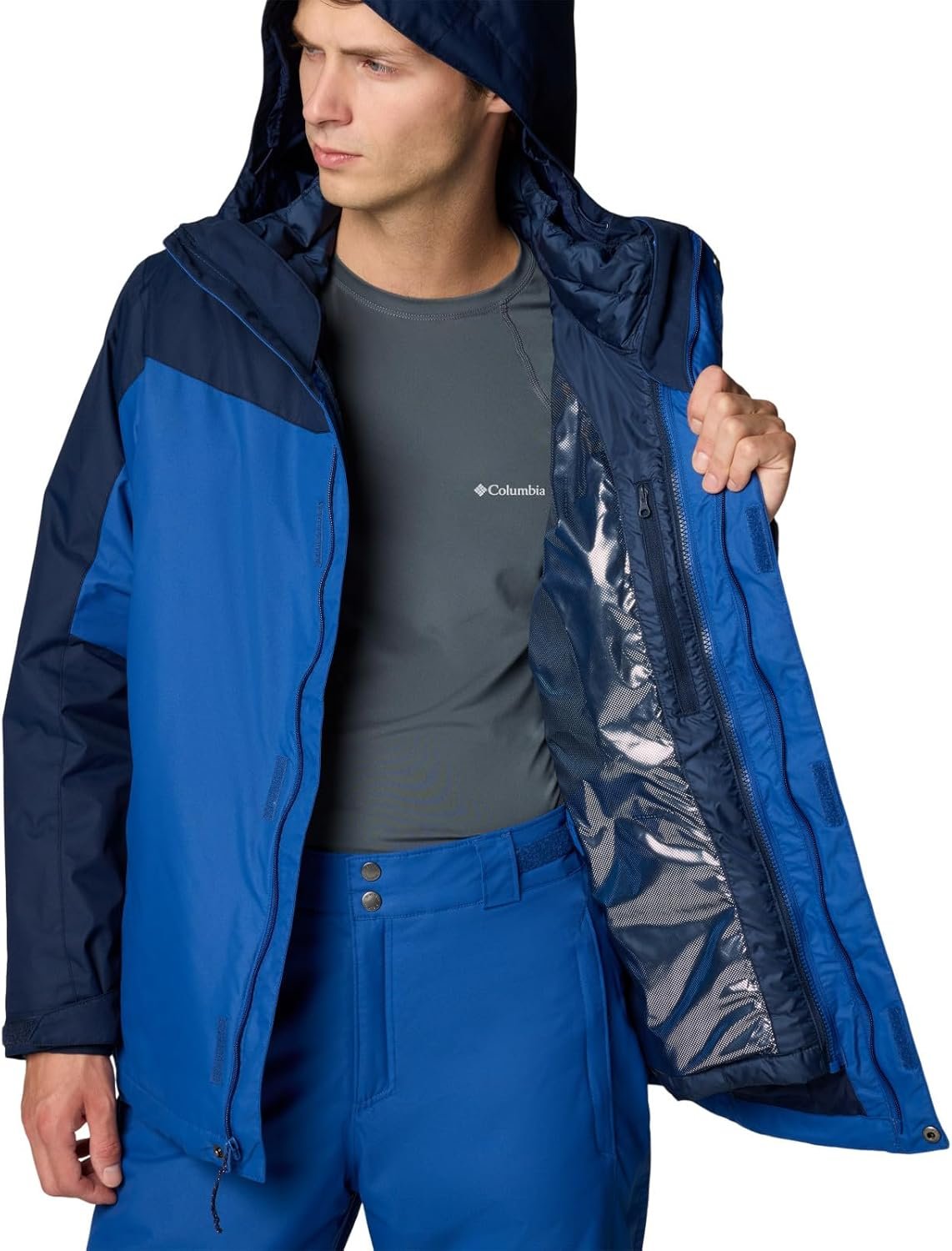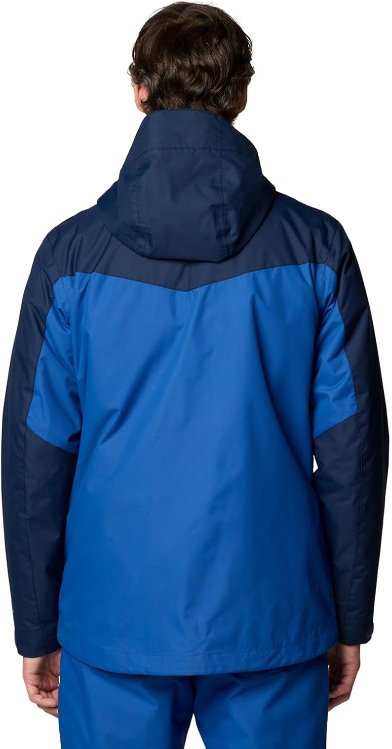 This Columbia men’s 3-in-1 ski jacket lets you wear a fully waterproof-breathable shell or an insulated thermal-reflective liner—or both for serious snow and cold. It’s loaded with recycled insulation and slope-ready features, including a powder skirt, ski pass pocket, and underarm vents. Columbia offers this jacket in multiple colors and sizes. Extended sizing available. Regular fit.