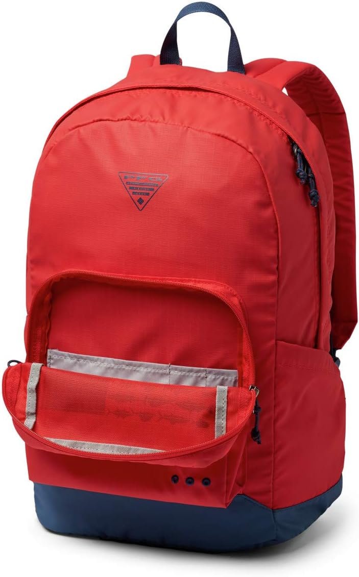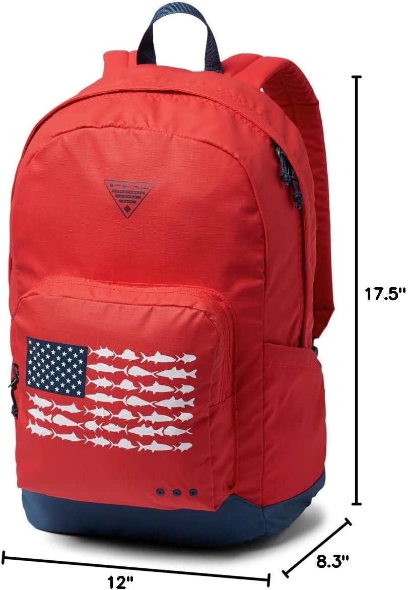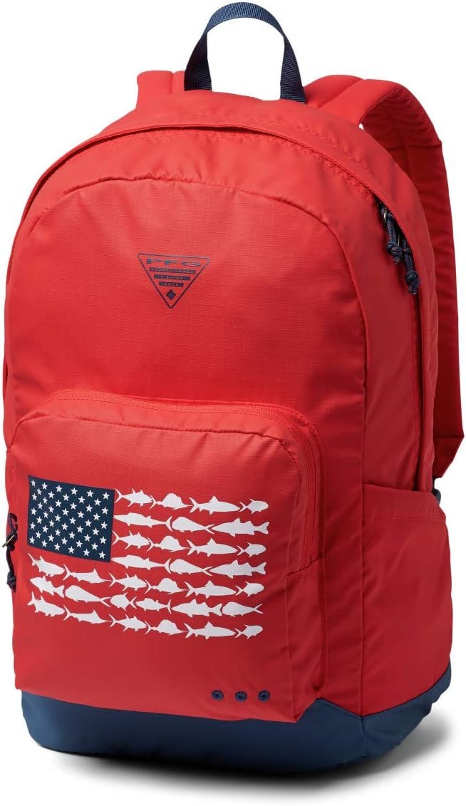 Share your fishing passion with this pack’s bold colors and Columbia PFG logo. A flat, padded bottom offers protection and helps it sit upright for easy access.
