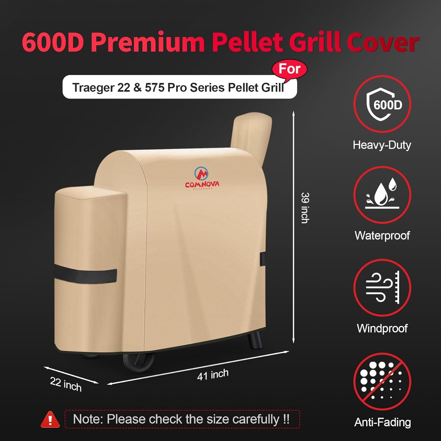 | Smoker Cover for Traeger 22 & 575 Series | – Measures: 41″ width x 22″ depth x 39″ height, Comnova 41 inch grill covers are perfectly compatible with Traeger Pro 22 / 575 series, Lil’ Tex elite 22, Eastwood 22, Century 22, Renegade elite, Lone star elite, Huntsman and Lil’ Tex pro pellet grills. Also fit Z Grill 550B and other pellet grills with similar size. Please check the dimension of your smoker grills carefully before ordering.
