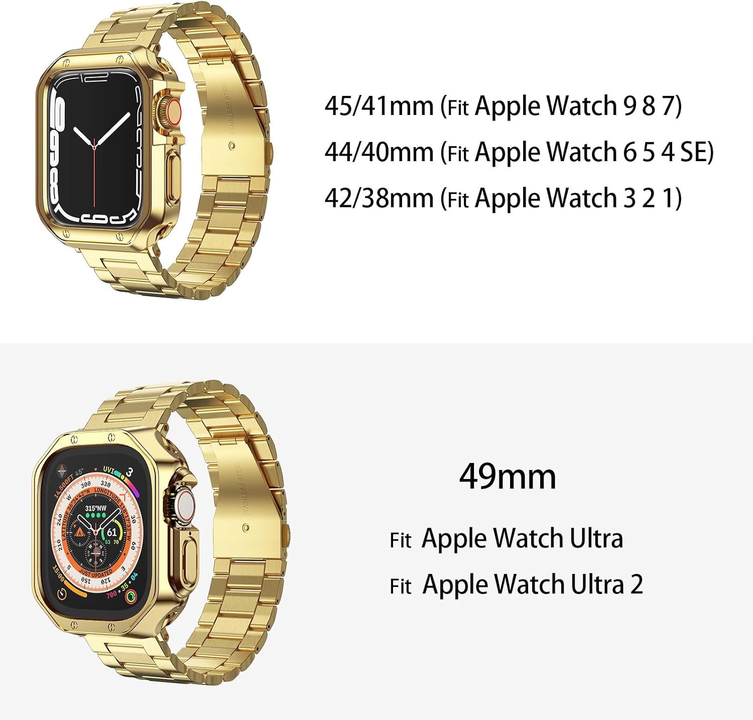 Compatible with Apple Watch 49mm (Apple Watch Ultra 3/2/1)Compatible with Apple Watch 46/42mm (Apple Watch series 11/10)Compatible with Apple Watch 45/41mm (Apple Watch series 9/8/7)Compatible with Apple Watch 44/40mm (Apple Watch series SE/6/5/4)Compatible with Apple Watch 42/38mm (Apple Watch series 3/2/1)