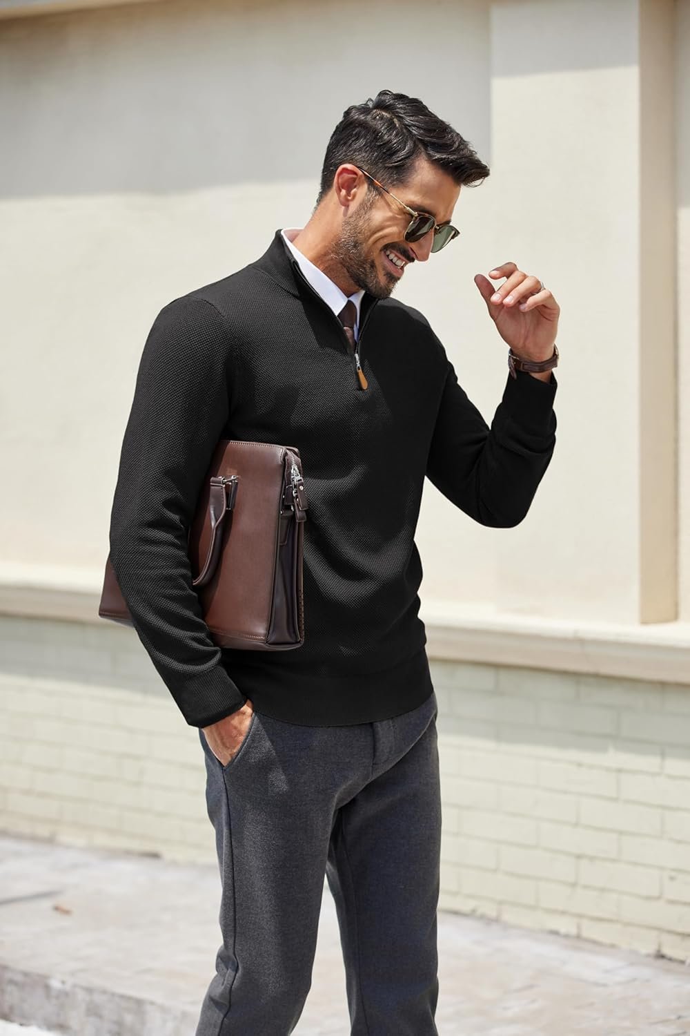 COOFANDY Men’s Quarter Zip Pullover Slim Fit Dress Mock Neck Polo Sweaters