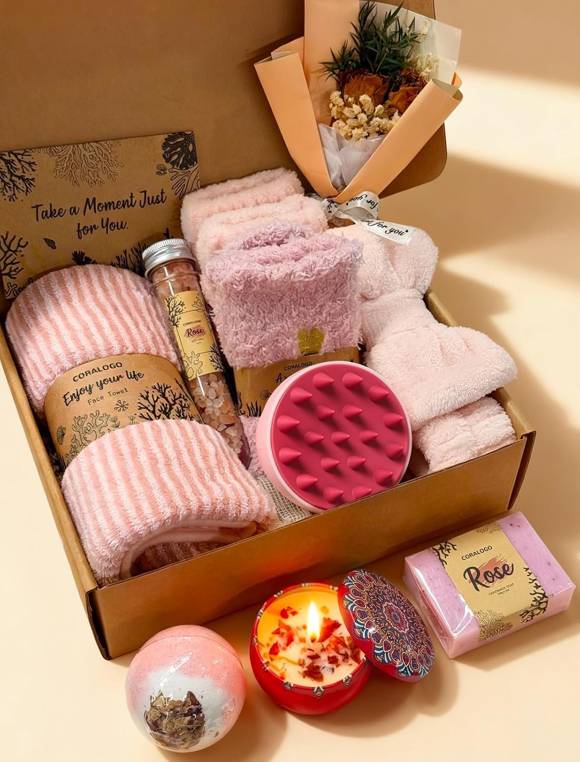 Complete Spa Experience: This 11-piece set offers a complete spa experience at home. From bath essentials to post-bath relaxation items, each piece is thoughtfully chosen to help you relax, rejuvenate, and enjoy quality self-care time. A perfect way to treat yourself or share the gift of relaxation with someone special