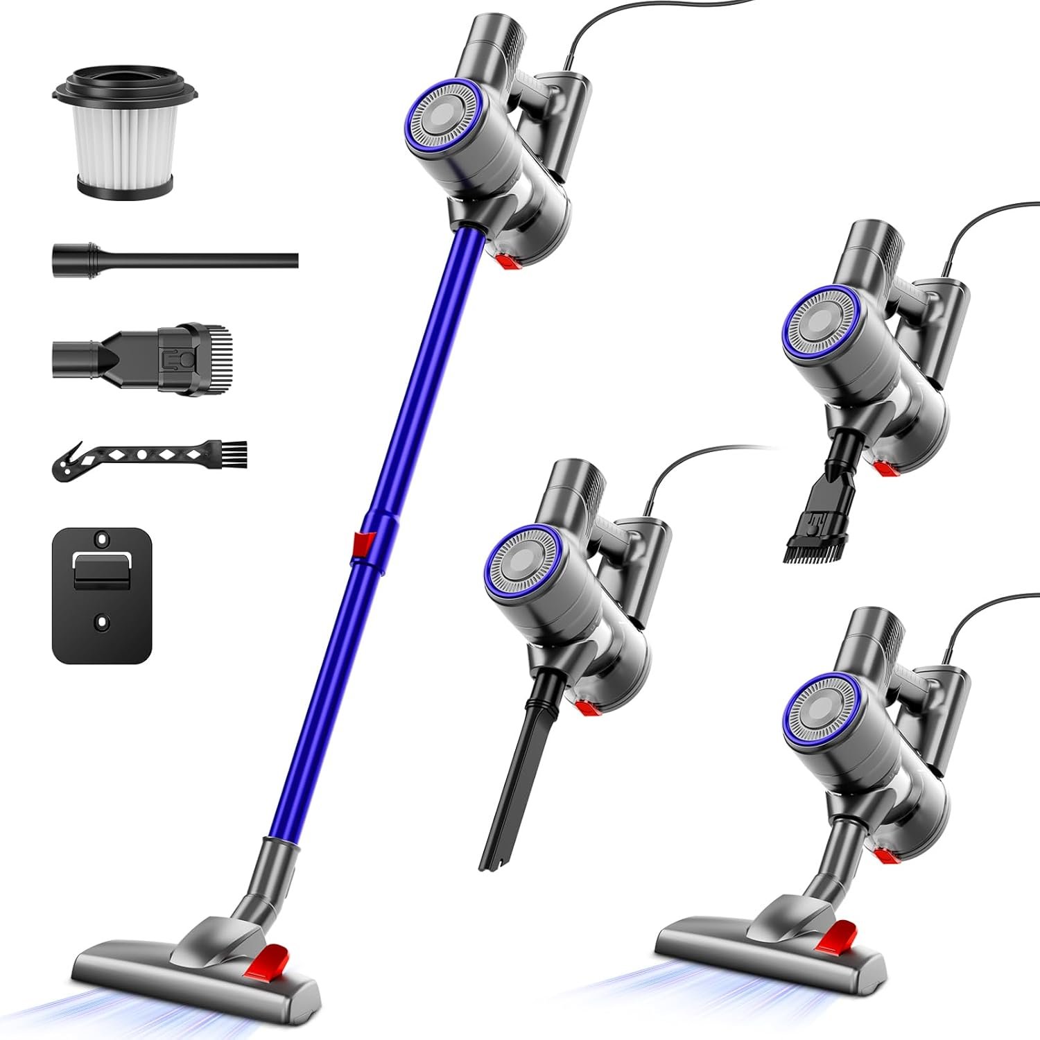 🧰【2-IN-1Versatility】:The stick vacuum Cleaner with a variety of suction tools, including: floor nozzle, crevice tool and 2 in 1 brush,can easily switch to handheld vacuum with various attachments allowing you to clean everywhere in your home.