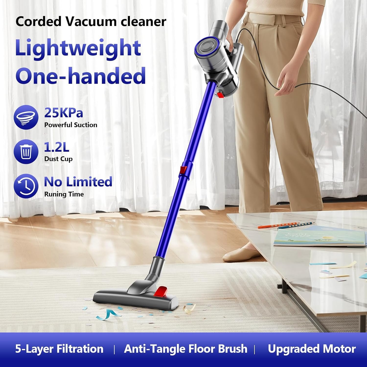 ✨【Lightweight & Portable】:The corded stick vacuum is only 3.7 pounds and ergonomic handle alow cleaning with just one hand,easily converts from stick vacuum to a handheld vacuum with 2 versatile attachments.You can easily take this stick vacuum to any cleaning corner.