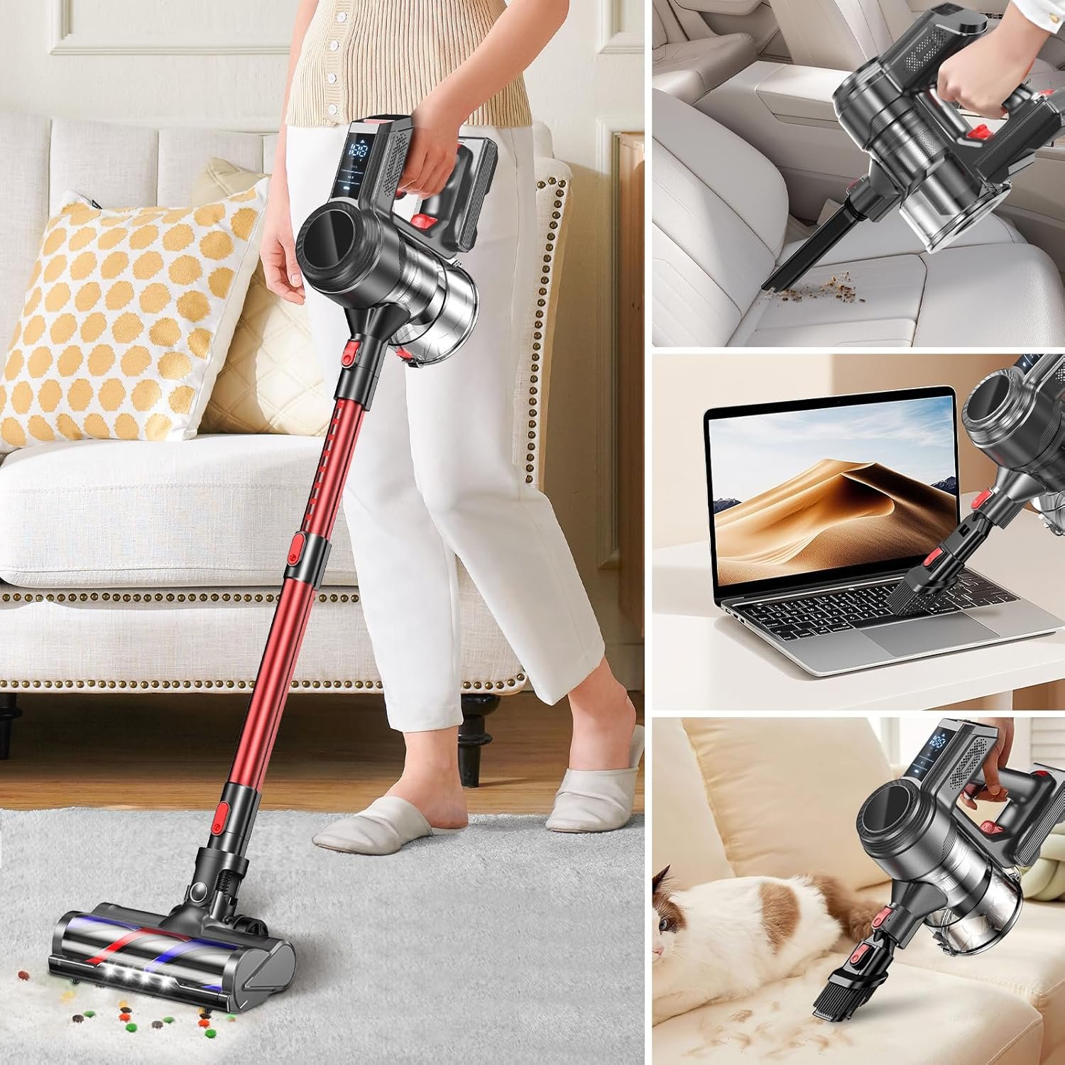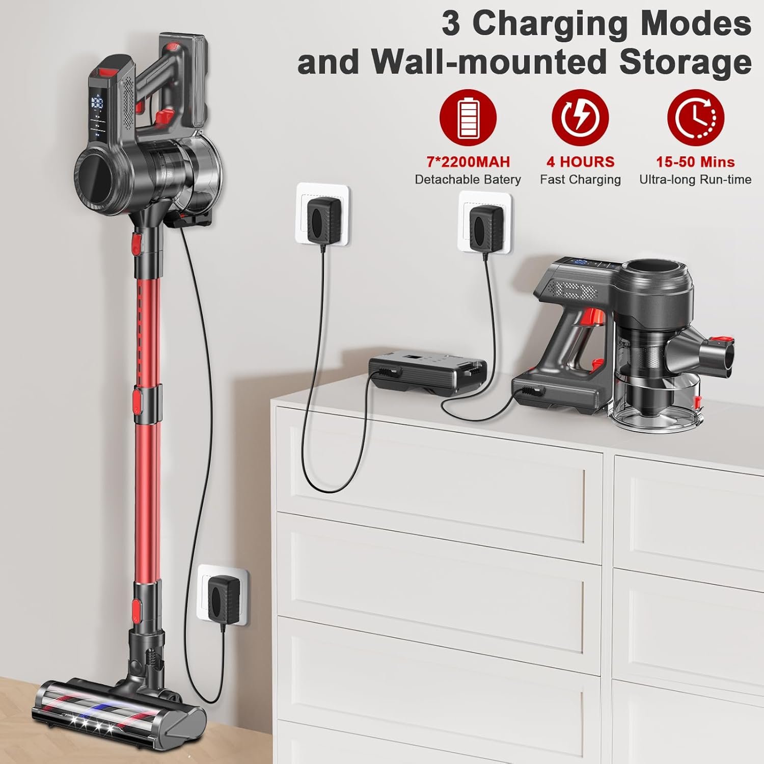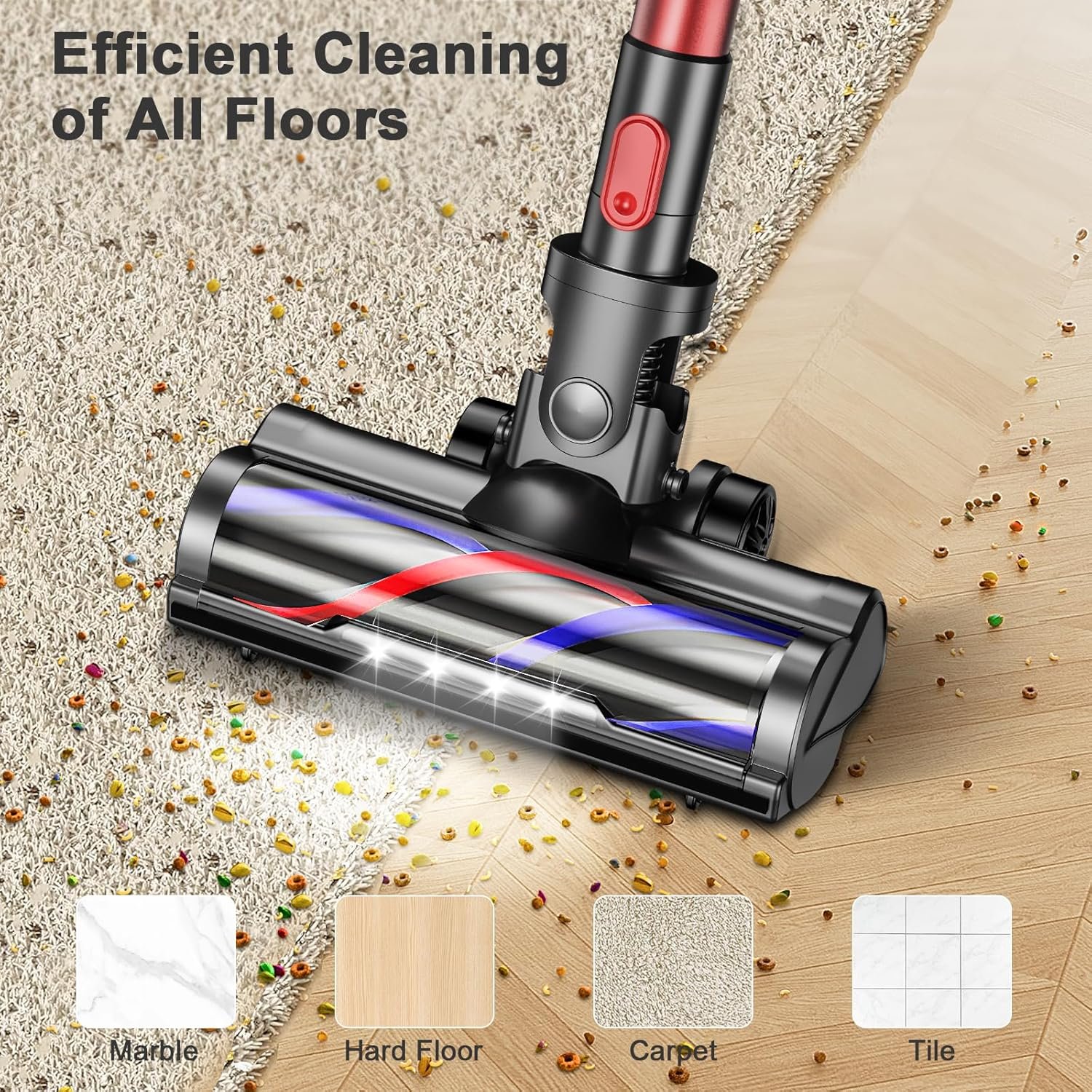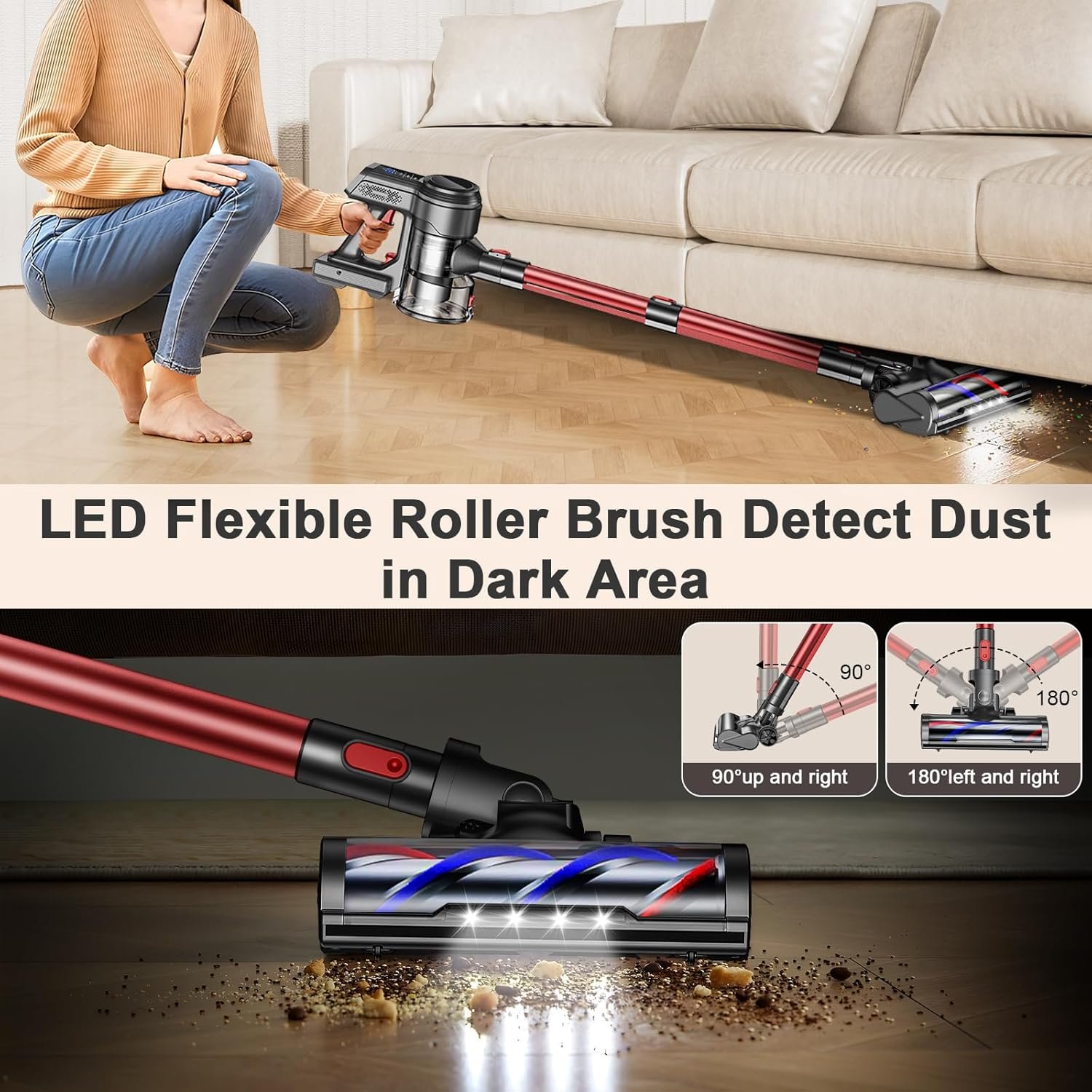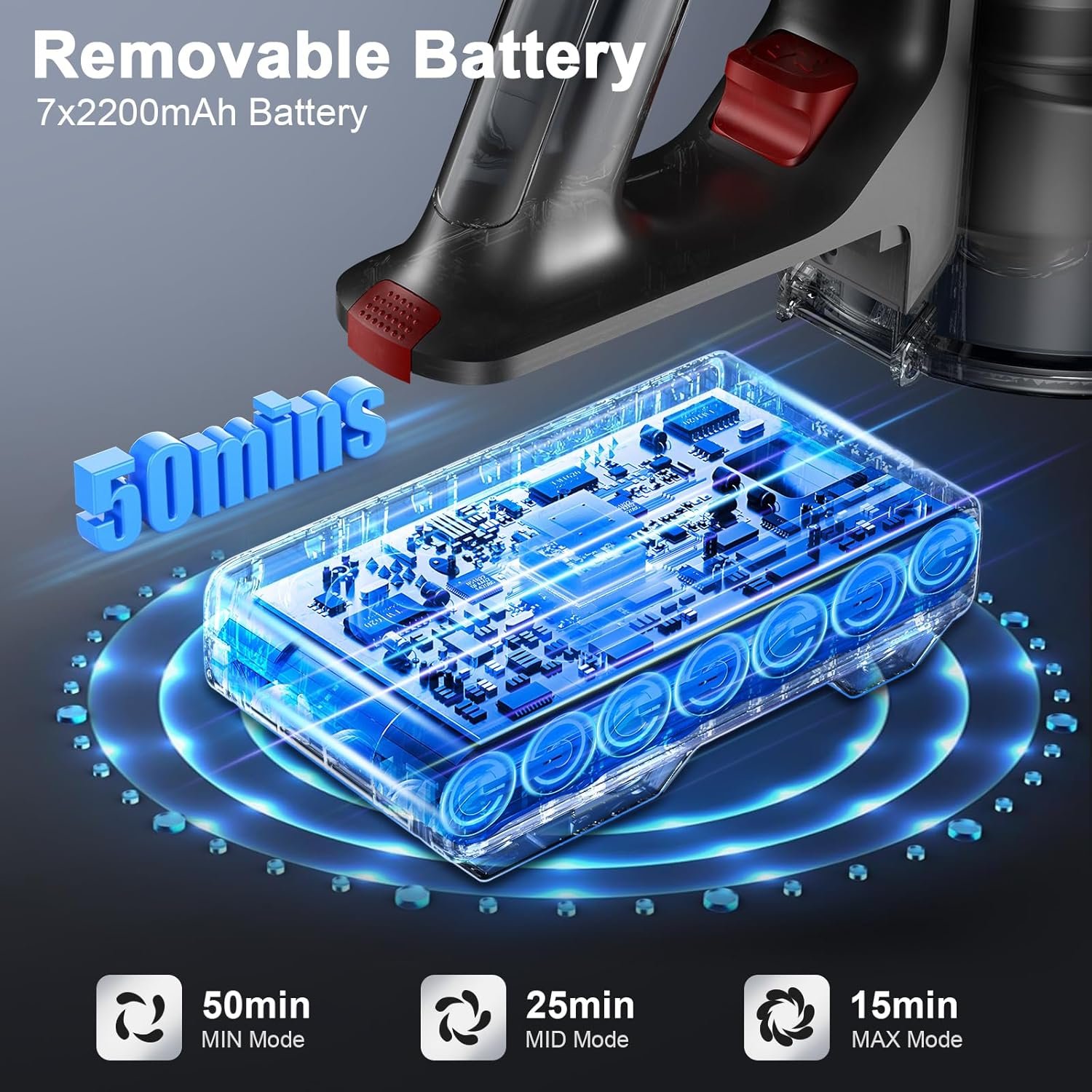 [50-Minute Long Runtime]: vacuum cleaners for home with a powerful rechargeable battery, this cordless stick vacuum cleaner offers an impressive 50 minutes of continuous cleaning on a single charge. This extended runtime allows you to clean larger areas without needing to recharge, making it ideal for whole-house cleaning or larger rooms.