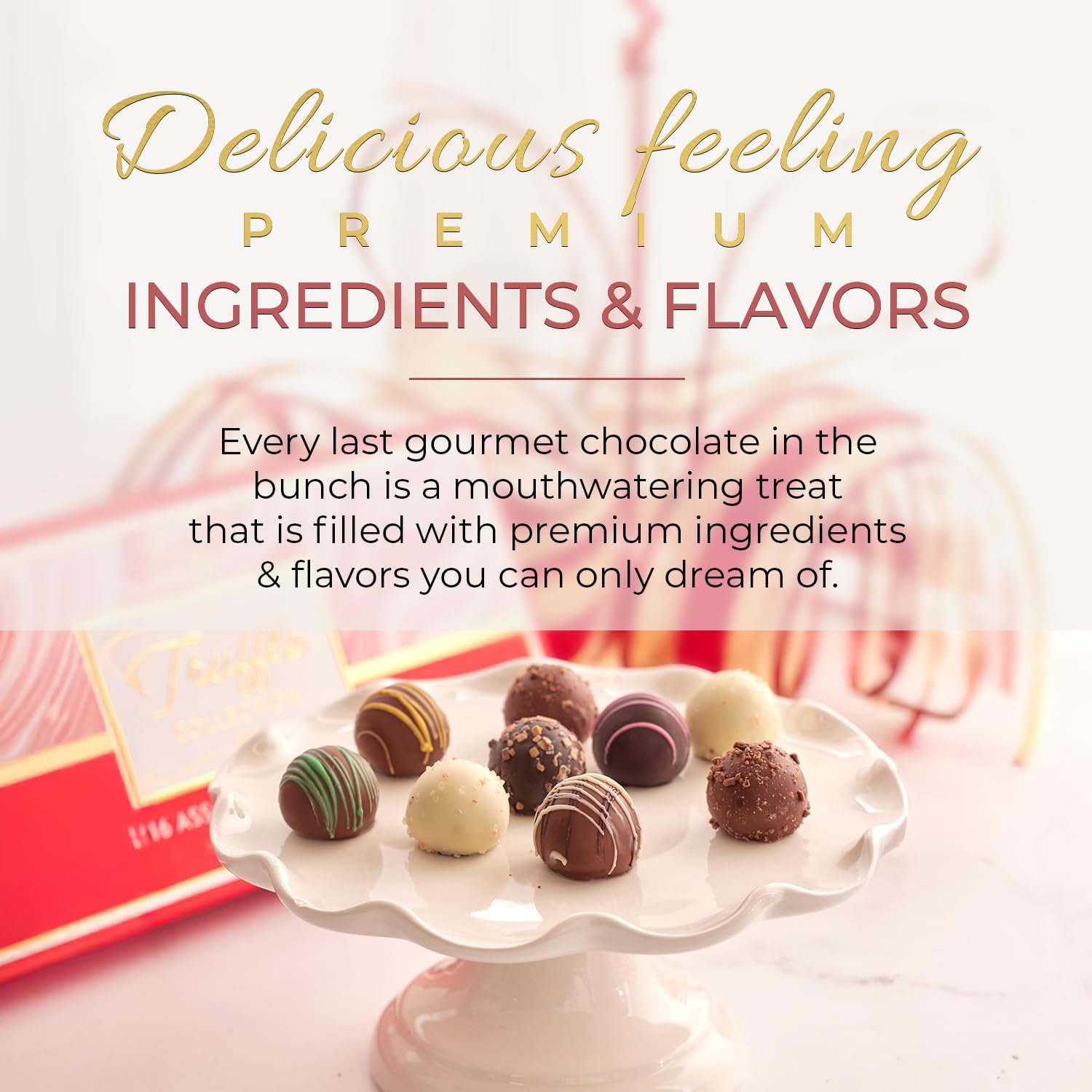 Delicious Fillings: Every single one of our gourmet assorted candy chocolate truffles is a mouthwatering treat filled with premium ingredients and dream-worthy flavors. From Amaretto to Caramel, Champagne to Coffee, Hazelnut to Irish Cream, Raspberry to Sea Salt Caramel, and Tiramisu, each bite is an exquisite indulgence.