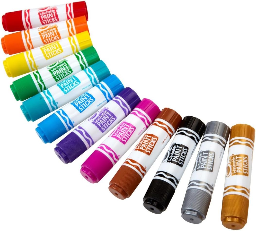 Enjoy the fun of painting with less mess this set features 12 crayola paint sticks in assorted colors. Each washable paint color easily washes from skin and washable fabric, making it great for young artists and their parents. Designed to work on a variety of surfaces, these convenient paint sticks provide full coverage and can be easily re-capped and stored for future use. Unlike traditional paints, crayola paint sticks do not require water and dry in 60 seconds or less when used on poster board. safe and nontoxic, these paints are ideal for adults and children, ages 3 and up.