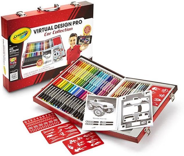 Contains: Design case and 20-page design book, 36 colored pencils, pencil sharpener, 20 Super Tips markers, 4 stencils and Virtual Design & Drive app