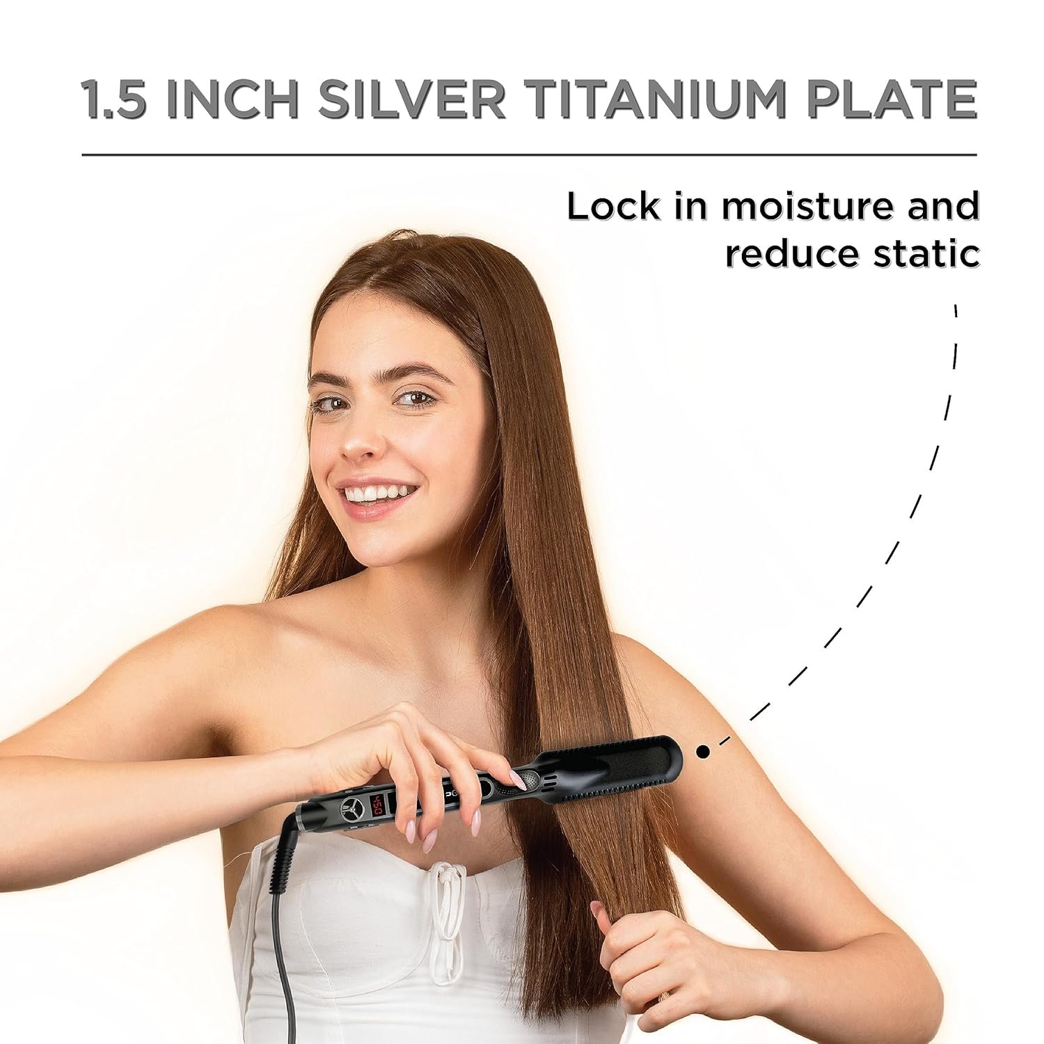 Silver Titanium Plates Digitally Operated Heats 280-450 Degrees 40 Min. Auto Shut Off