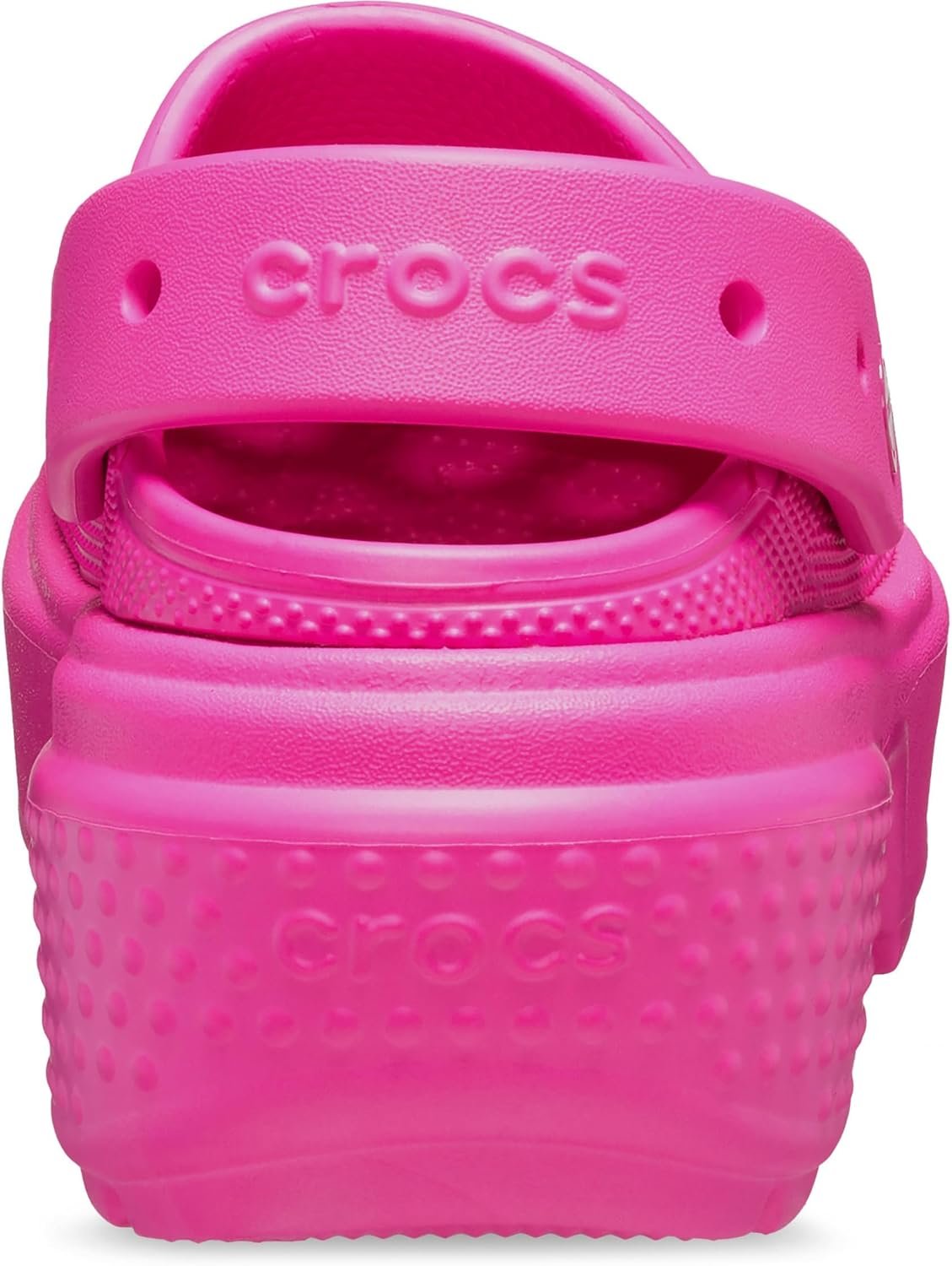 Customers find these Crocs comfortable, with one mentioning their feet don’t ache as much, and they appreciate the bright colors, with one noting the matte finish. The shoes receive positive feedback for their quality, height-enhancing properties, and weight, with customers feeling taller when wearing them. While some customers find them true to size, others report they run too wide. The grip receives mixed reviews, with several customers describing them as clunky.