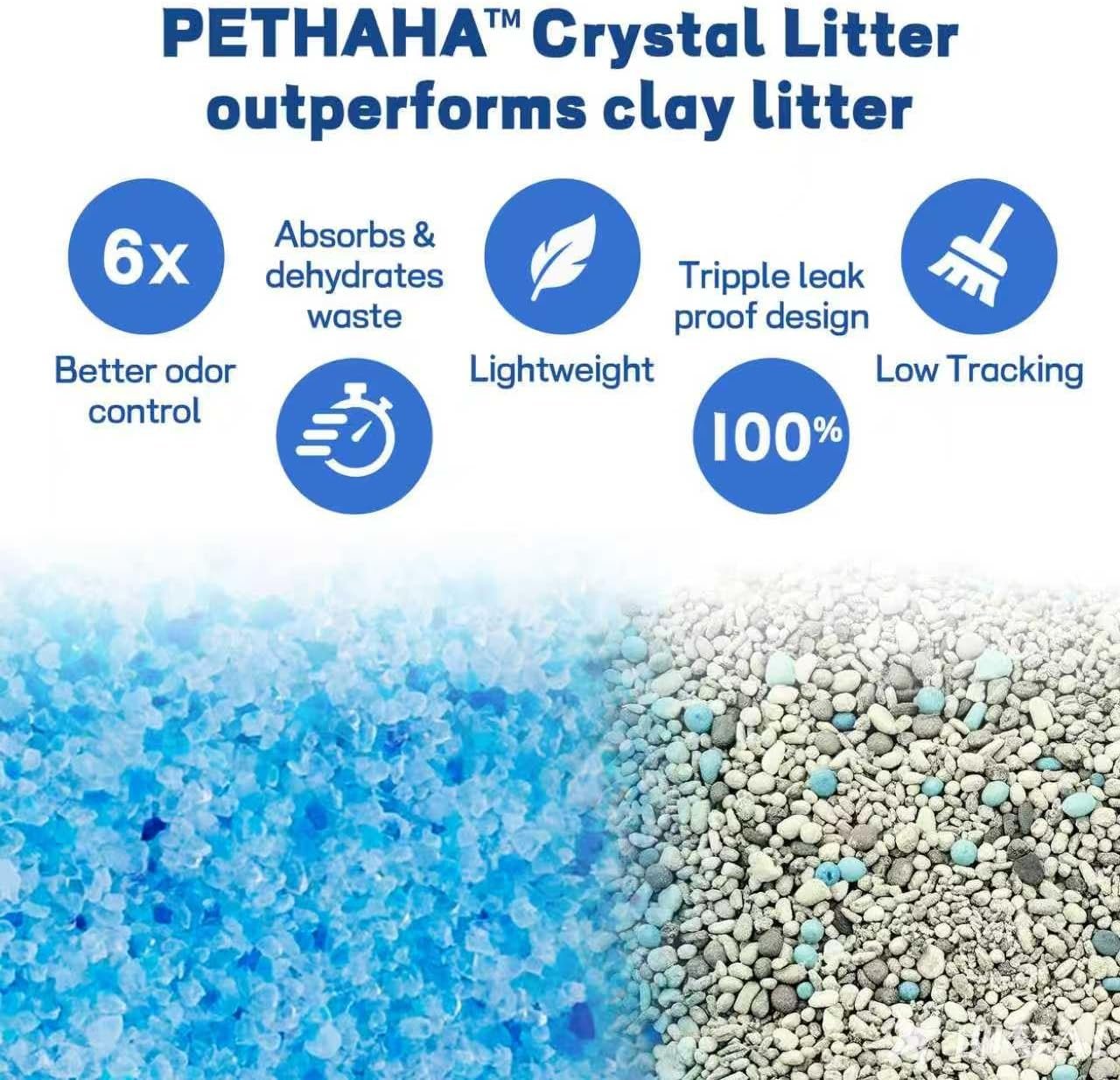2)The high-quality crystal litter can last for weeks. It has excellent Odor Control ability. It absorbs urine and dries solid waste for 6x faster than clumping clay litter.