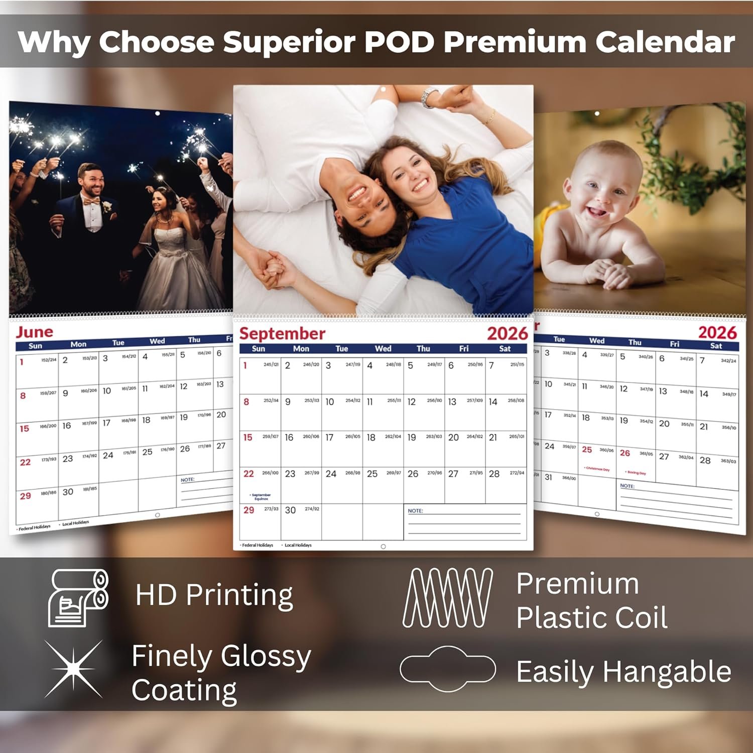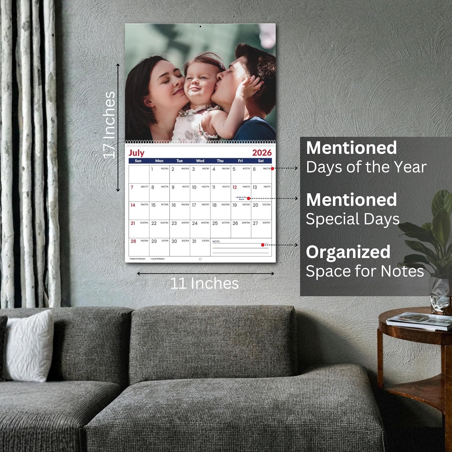 📝 STAY ORGANIZED WITH NOTES & HOLIDAYS – Each month of your custom photo calendar 2026 not only showcases your memories but also includes all major holidays and special events to keep you on schedule; With a dedicated notes section for writing down appointments, reminders, or personal to-dos, this calendar helps you stay organized and plan effectively for the months ahead