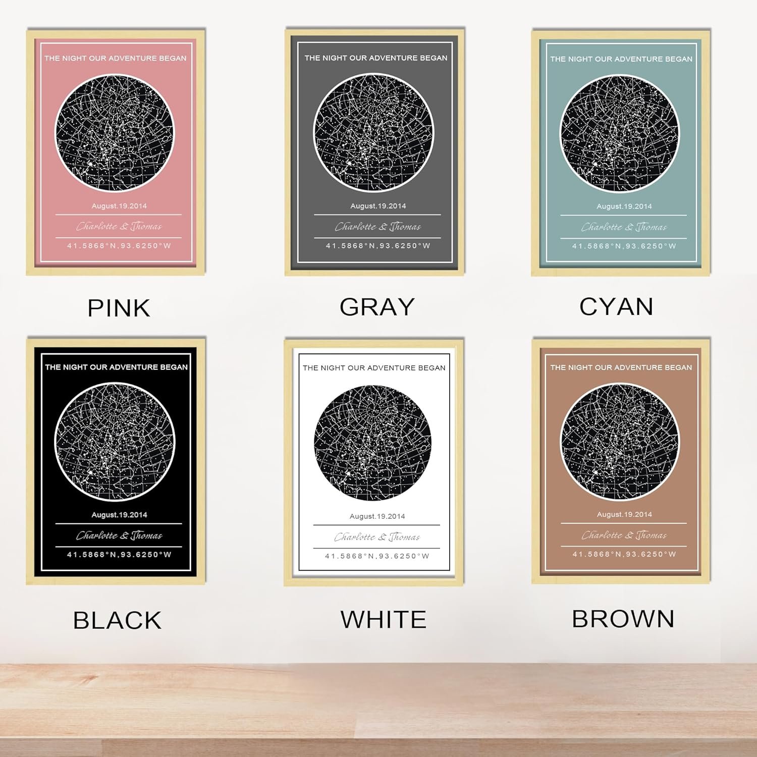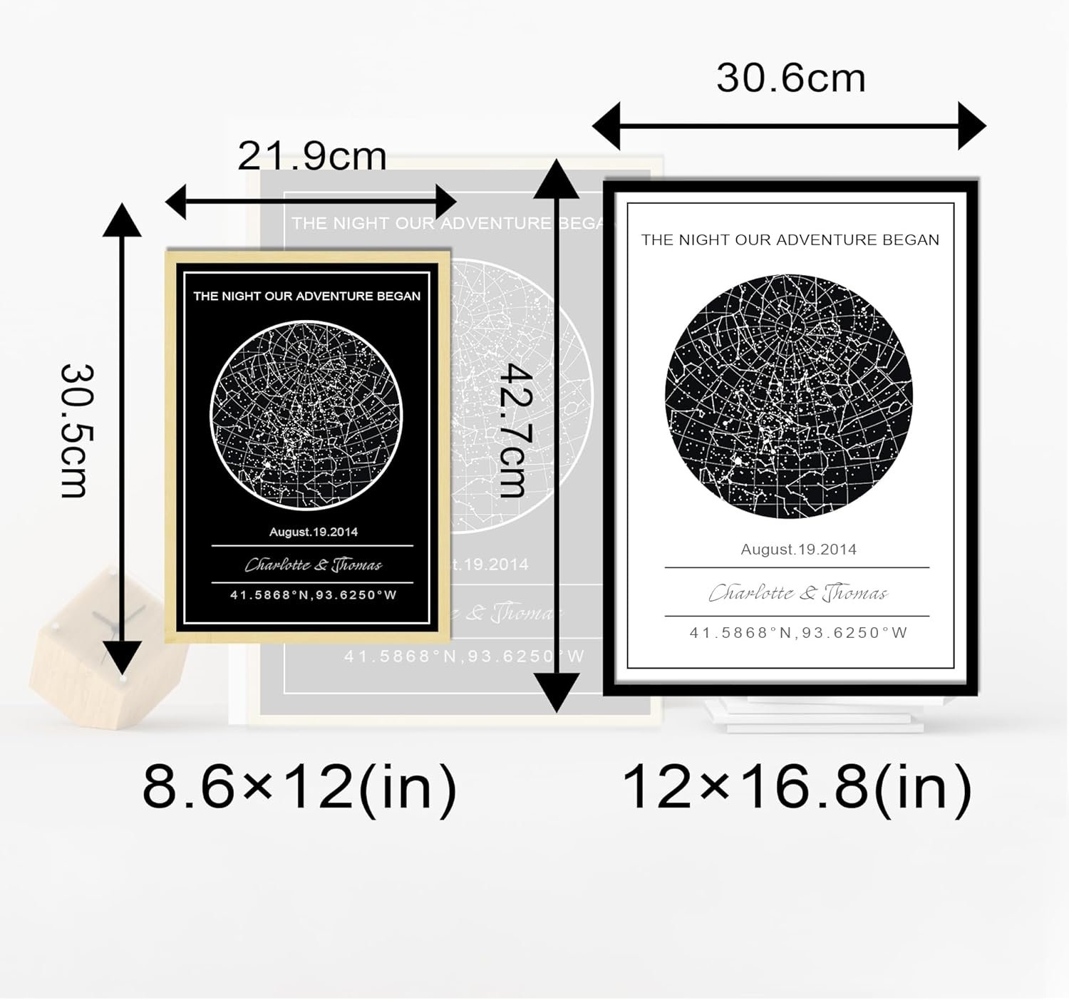 ✦CUSTOMIZABLE FEATURES : The star maps come in A3/A4 sizes, color styles, and unframed / framed options to suit any aesthetic – making each custom print as unique as the moment it captures.