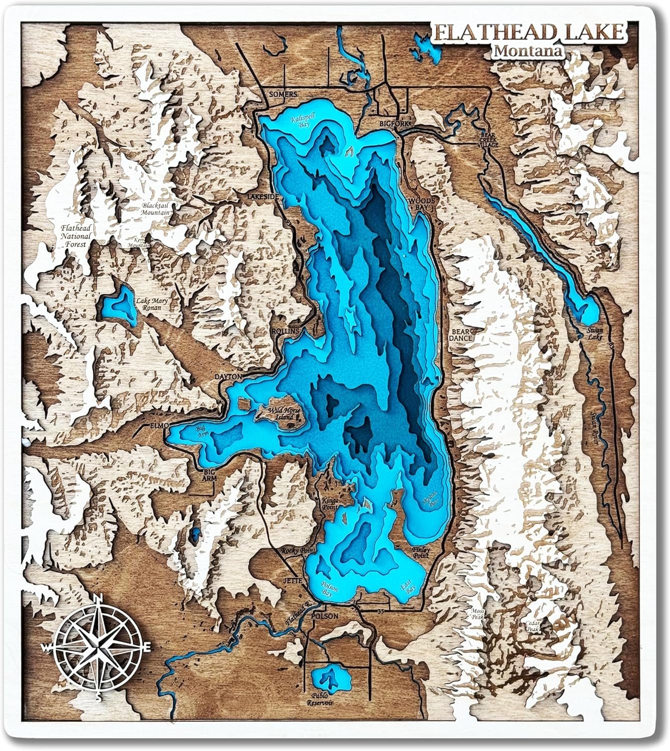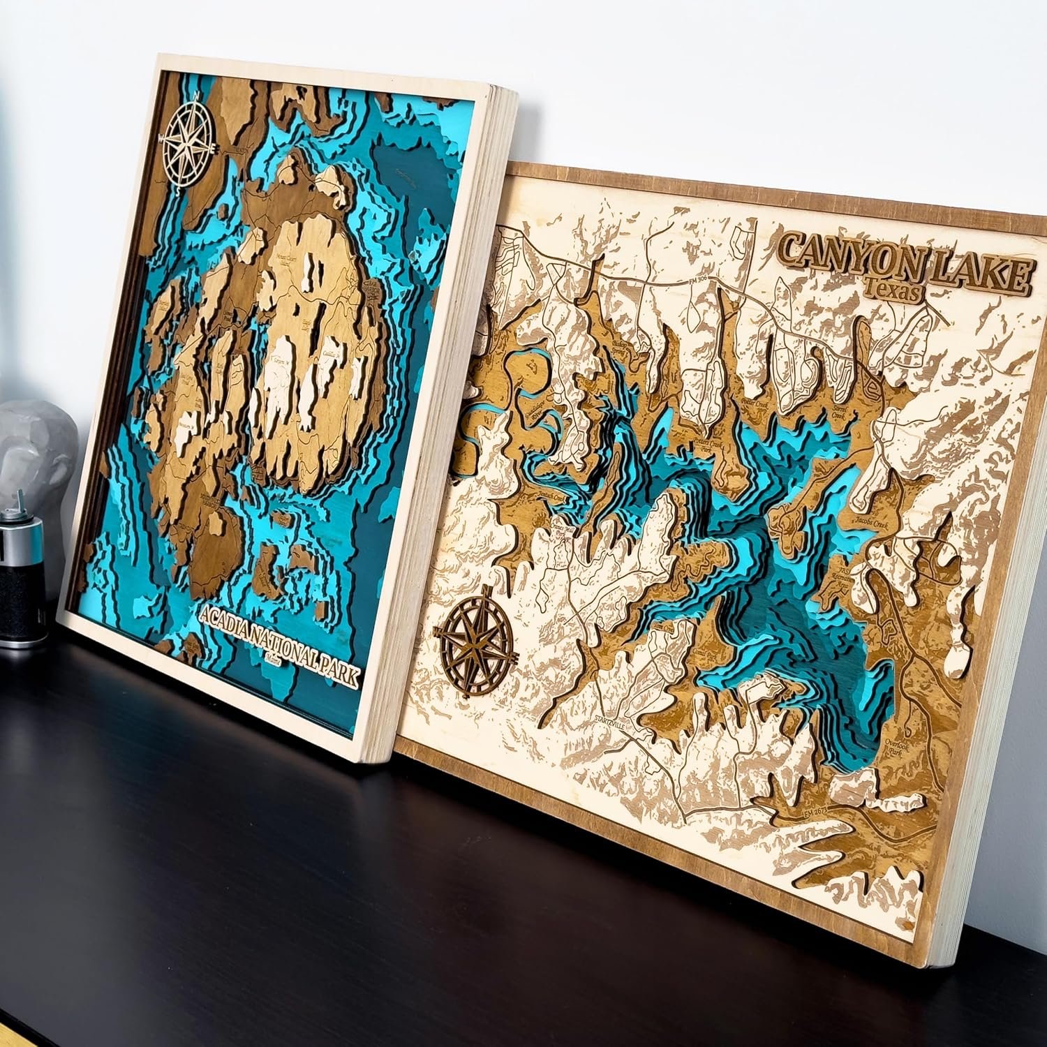 Stunning Topographic Wall Art Each map is laser-engraved and layered to reveal detailed depth contours, shorelines, and landmarks – a beautiful custom artwork for your home, lake house, or office. Unique rustic cabin decor and wooden topographic map design.