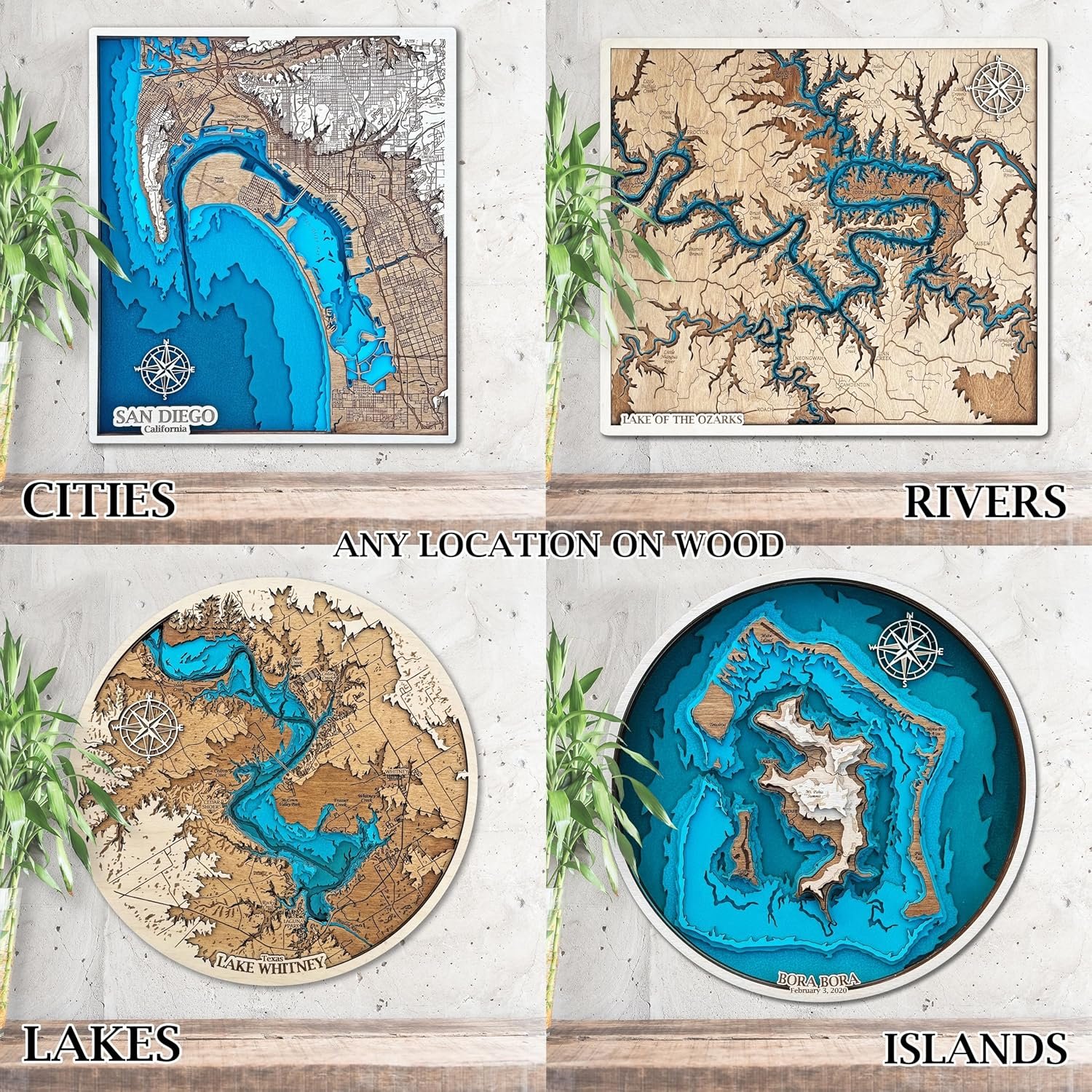 Custom Wood Map – Any Location We create personalized wooden maps of any lake, river, coastline, or city worldwide. Just send us the name and location – we’ll craft a unique 3D map just for you.