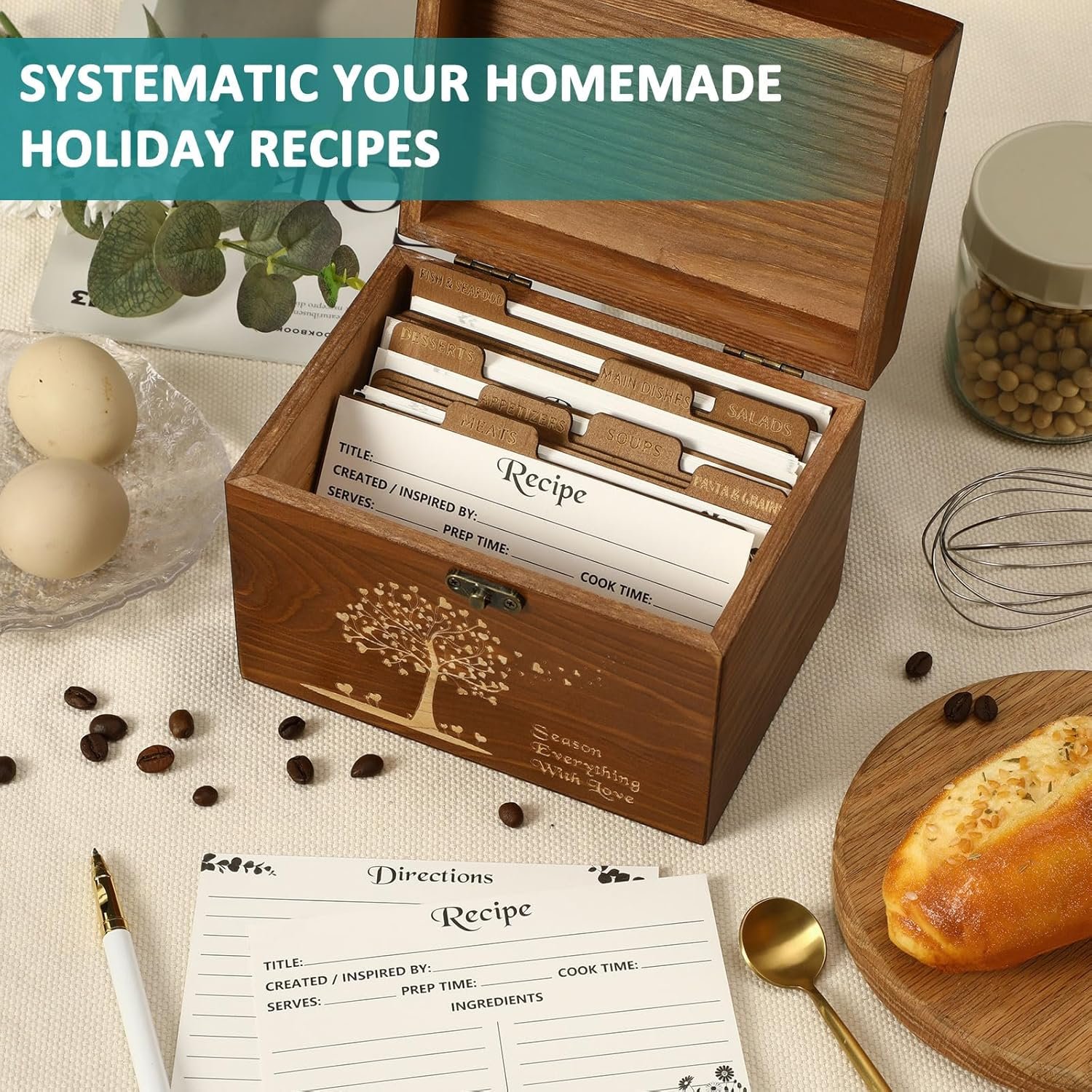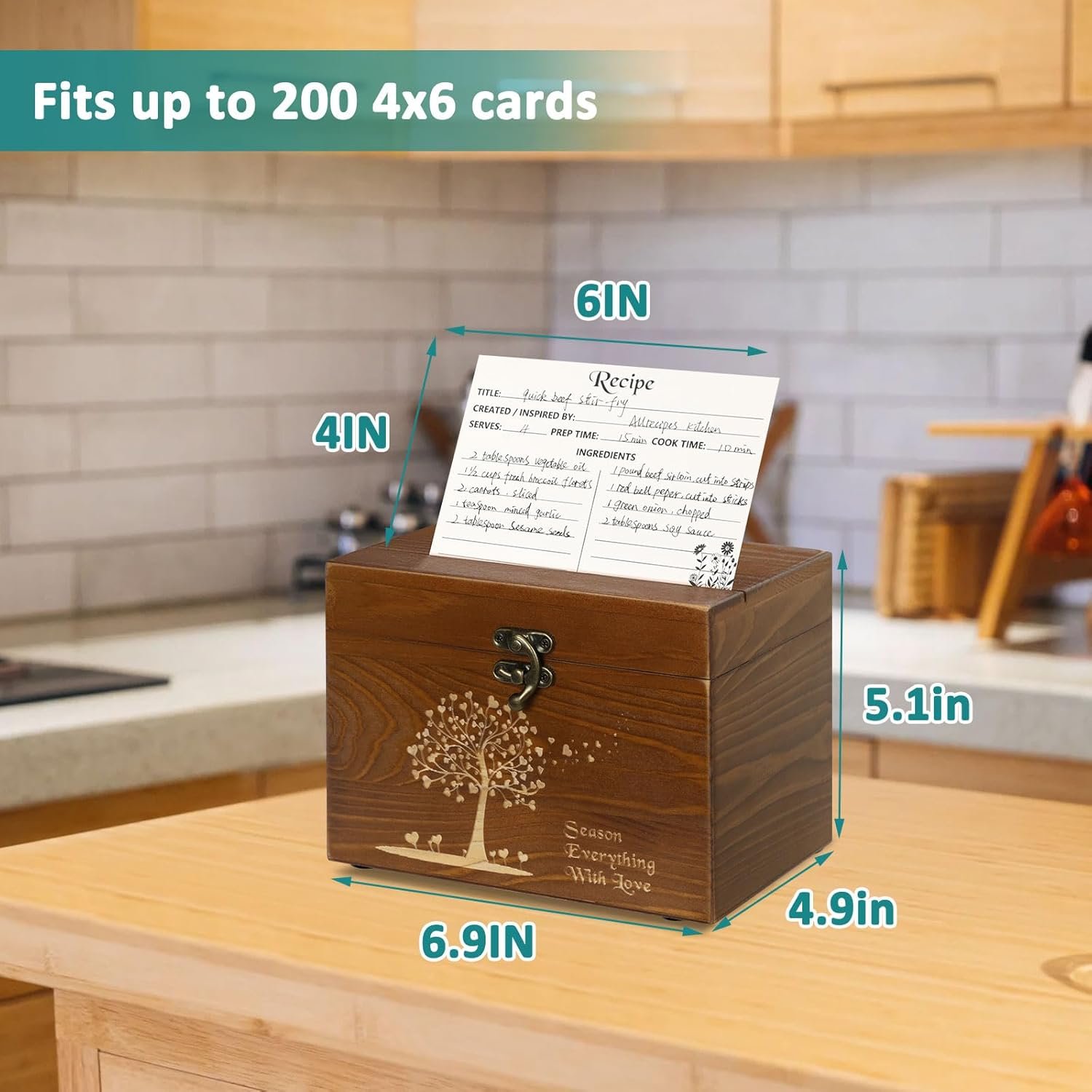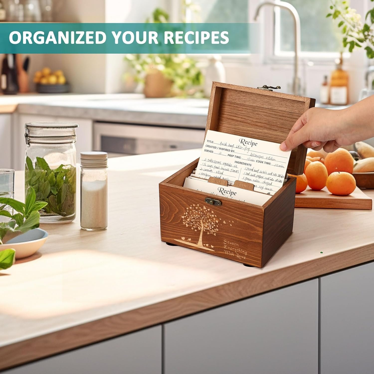 MINIMALIST VINTAGE STYLE- This wood recipe card box is not just a practical storage solution but also a visually appealing piece for your kitchen countertop, and a classic kitchen decor. It seamlessly blends with various kitchen styles and aesthetics, making it a joy to cook and share.